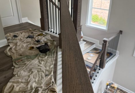 CertaPro Painters® of Salisbury/Concord/Gastonia, NC repainted the living areas of this Concord home and stained the newly installed stair rails.