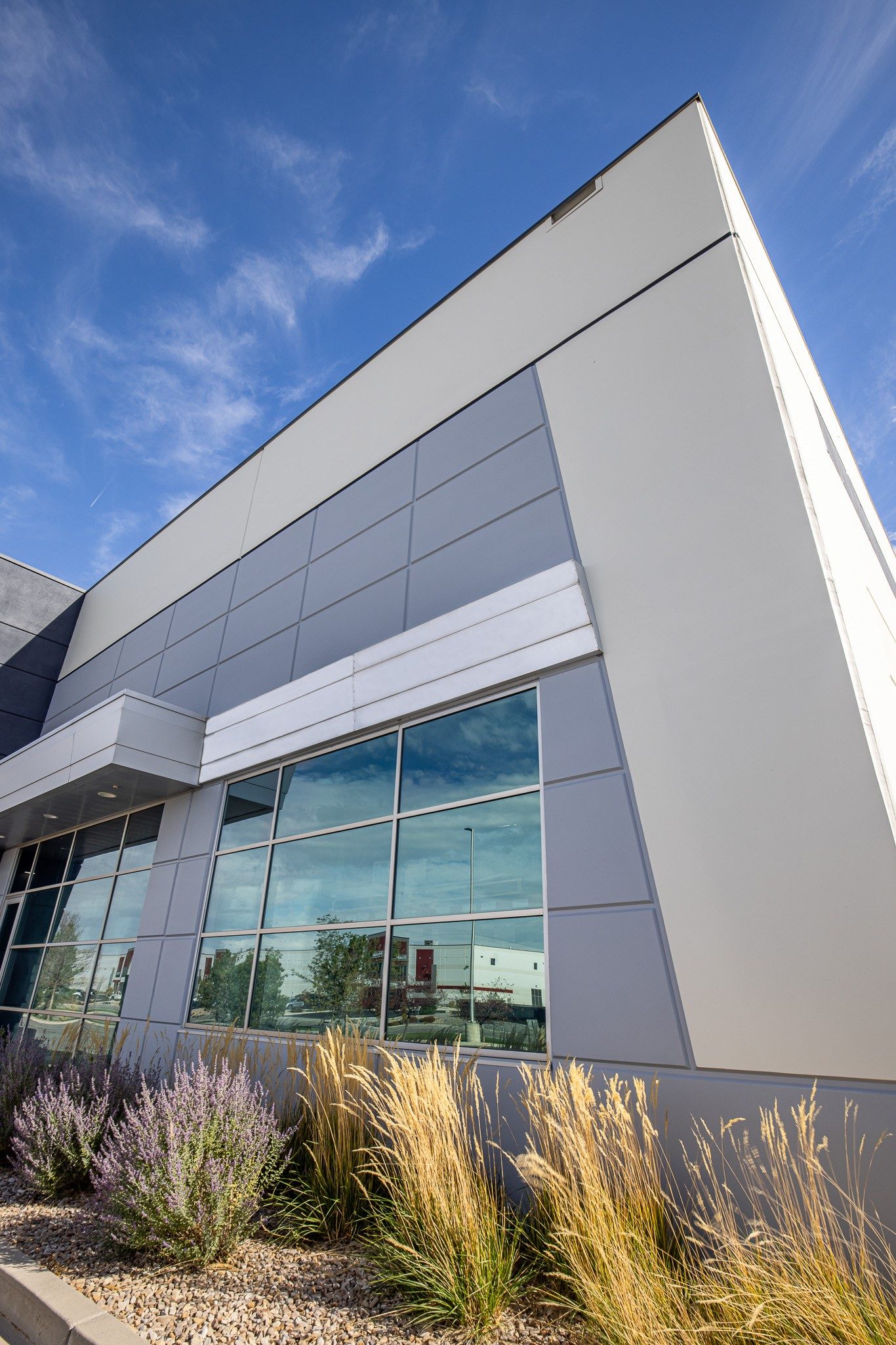These two buildings, located in an industrial park south of the Salt Lake City Intl. Airport, had not been painted for 10+ years and the rubber expansion joints were cracking. Our team was hired to repaint the exteriors of these buildings.