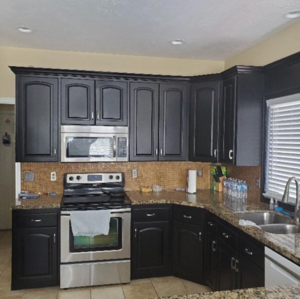 We brightened this kitchen in Bountiful, Utah using white paint on the cabinetry as well as refreshed their exterior doors with a new coat of paint.