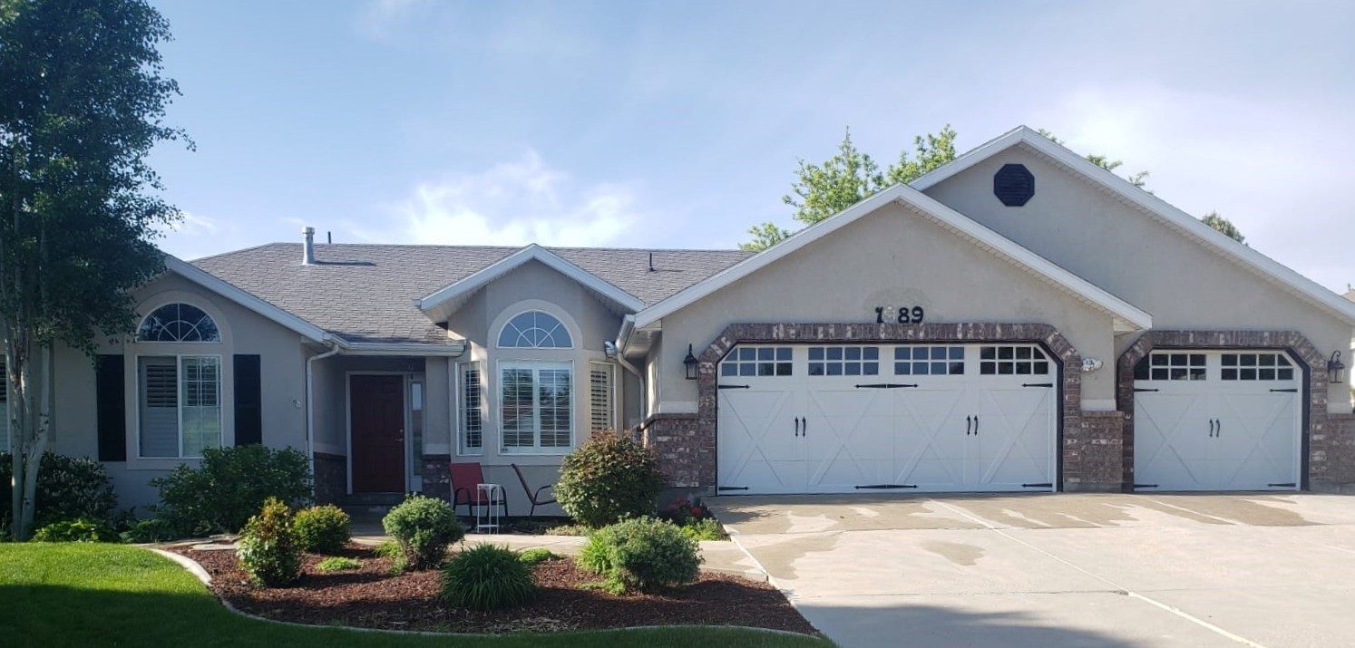 We painted the body of this stucco home with Dried Thyme by Sherwin Williams.