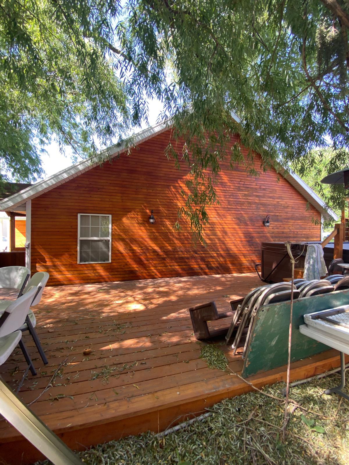 This home’s entire wooden exterior was given a stain treatment by our team.