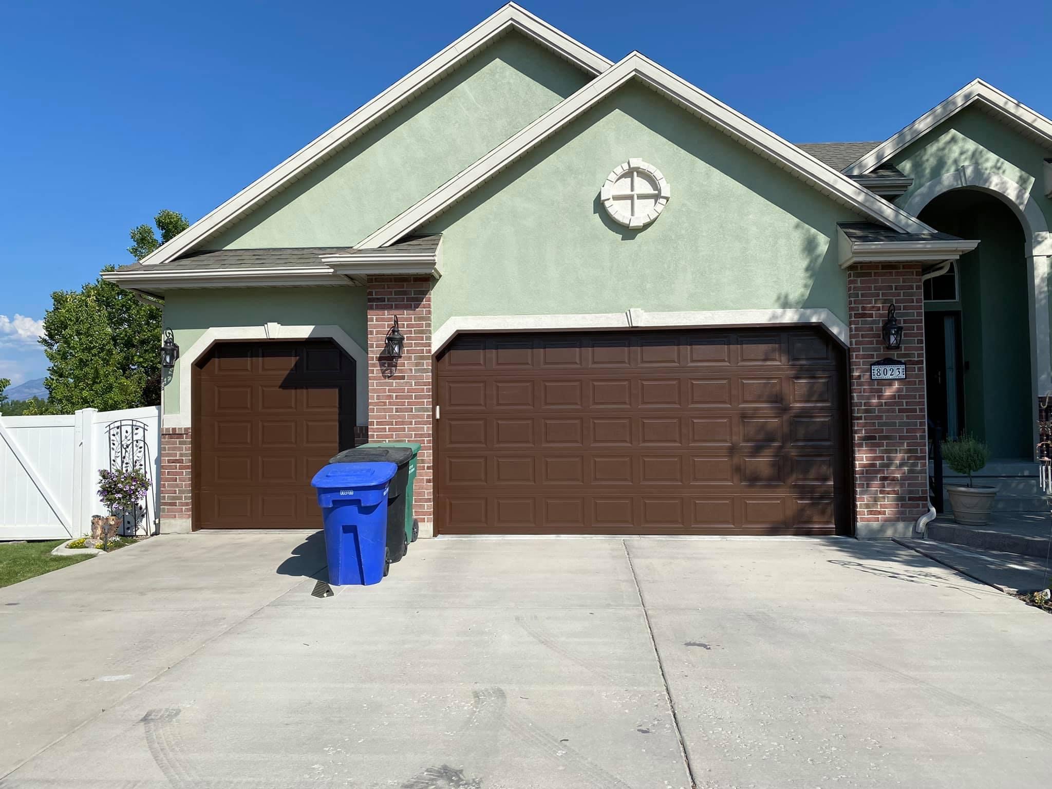 We used Clary Sage green to paint the stucco body of this West Jordan home. Turkish Coffee was used for the pop outs and trim. Vanilla Sugar was used for the dark brown stucco and aluminum areas including the garage doors. Great job to Luis and team!