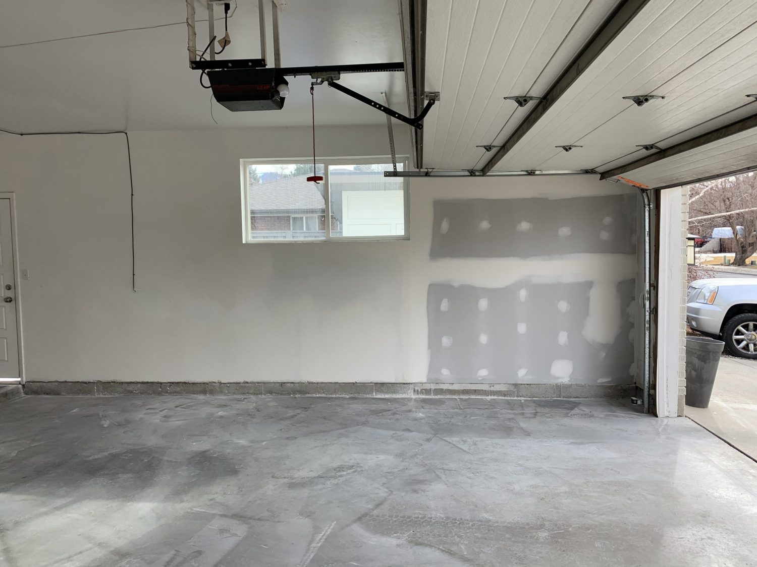 Our handyman, Mike, was tasked with repairing sections of drywall in this garage in Sandy, UT. He patched holes, replaced drywall sheets where needed, sanded and smoothed walls, and corrected a questionable water pipe issue, and installed water hookups for laundry. Learn more about our handyman services.