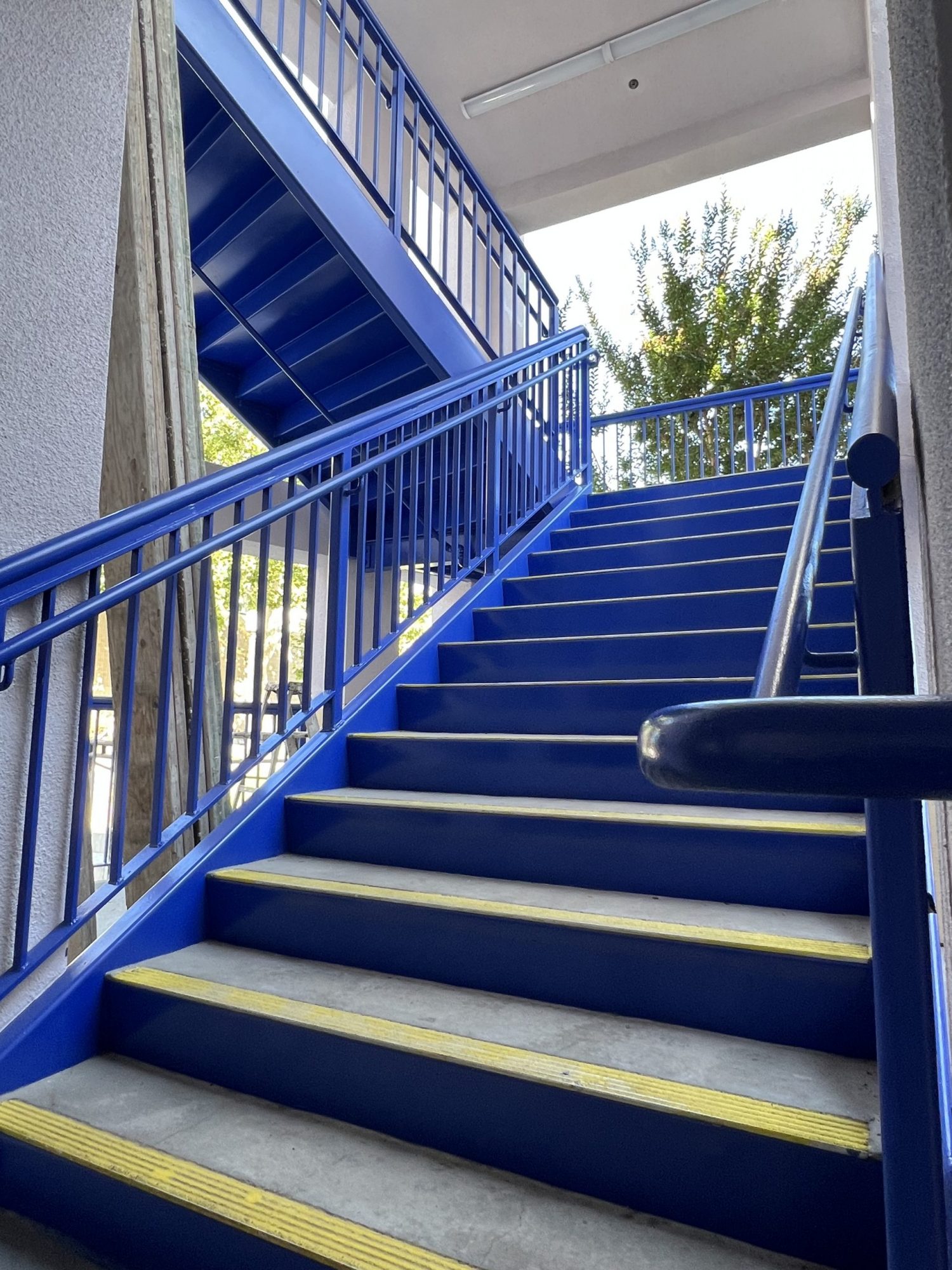 Project Involvement: This was an extensive exterior painting job that required the use of scaffolding, 22-foot scissor lifts, and 45-foot boom lift. It also involved using several colors, from the sandy beige that covers most of the exterior to the signature blue accents across the campus.
