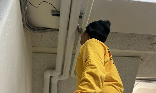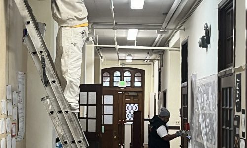 This was an interior painting project. Due to the building’s age, there were a lot of exposed pipes and ducting that we had to work around. Nothing was really moved or put away by the school staff before we started. We had to work around the existing items in the classroom, and we put everything back as if nothing had been moved.