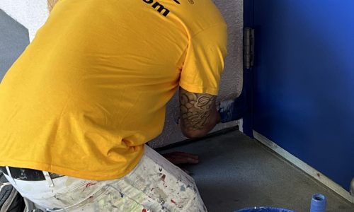 We painted the majority of the interior of the school. This includes (but is not limited to) several classrooms, the auditorium, the cafeteria, several hallways, and the library.