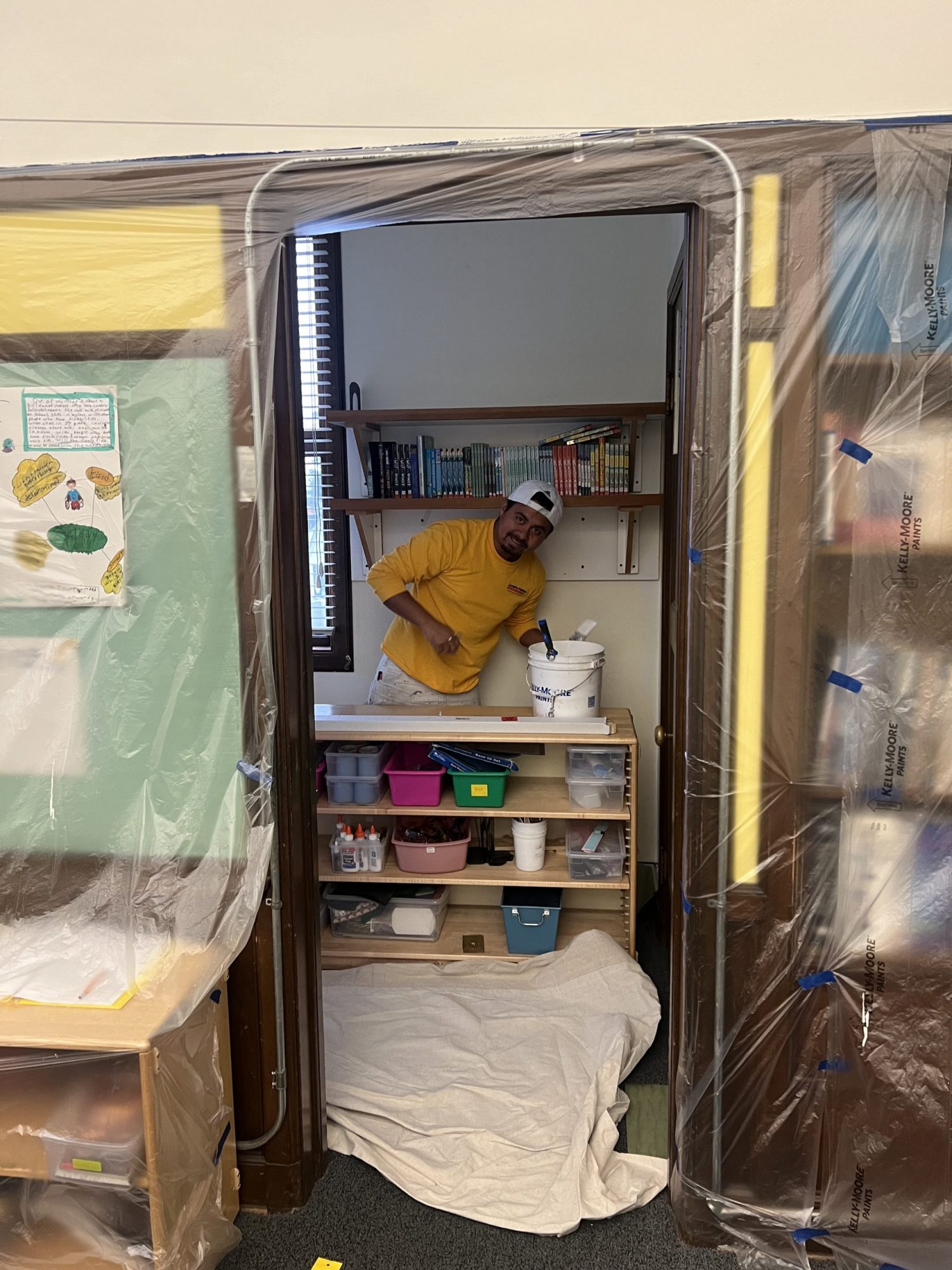 This was an interior painting project. Due to the building’s age, there were a lot of exposed pipes and ducting that we had to work around. Nothing was really moved or put away by the school staff before we started. We had to work around the existing items in the classroom, and we put everything back as if nothing had been moved.