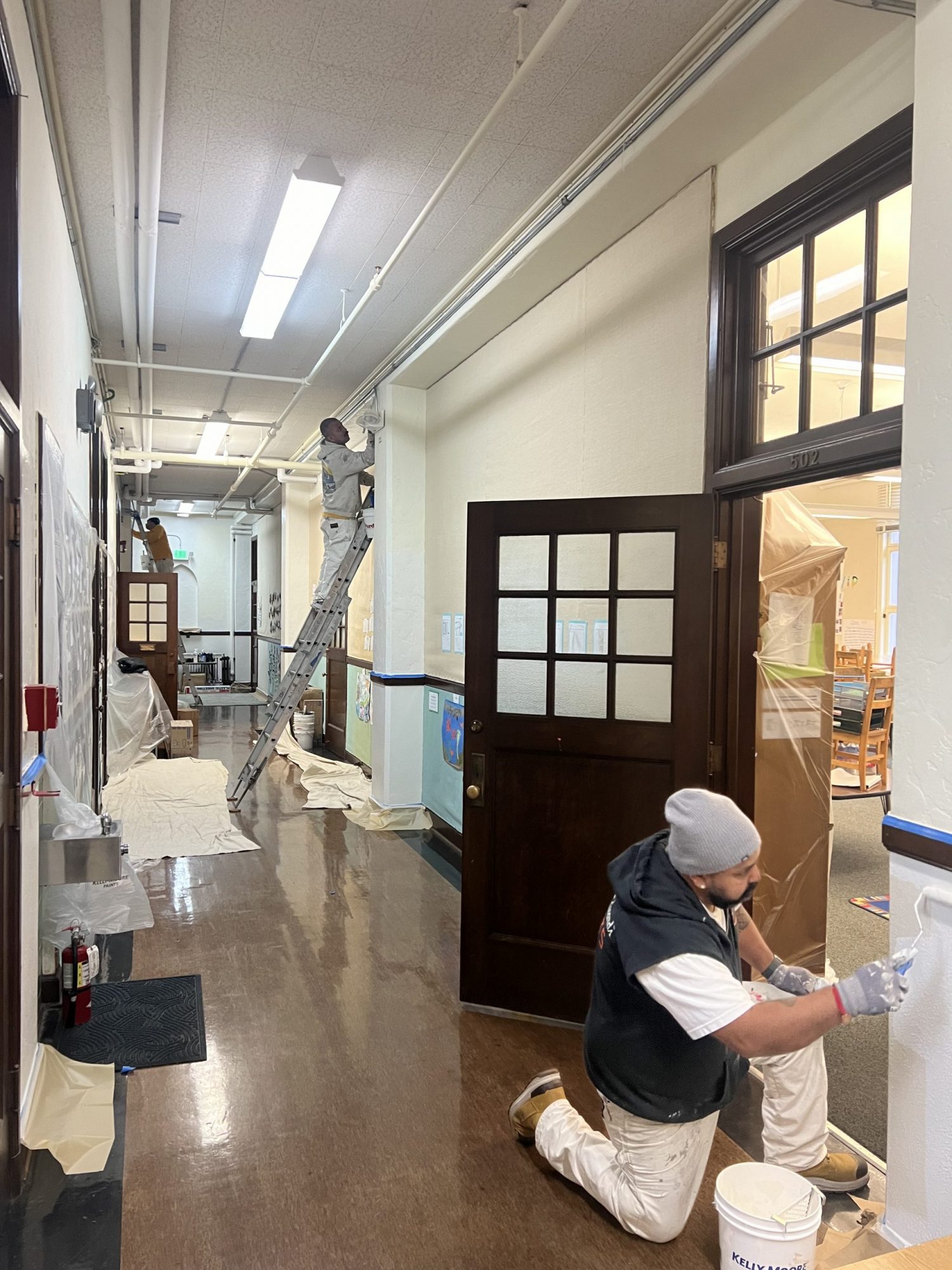 We were hired to paint a private school in the Upper Rockridge area of Oakland CA. This school teaches grades K-8. The building was built in the 1930’s.