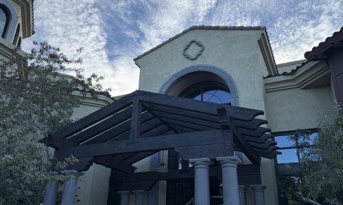 Prior to the project, the stained wood trim showed visible signs of aging from years of Arizona heat and UV exposure, resulting in faded finishes that reduced curb appeal and protective performance. To restore the trim and improve long-term durability, the client chose to transition from a stained finish to a painted system designed to enhance appearance and reduce future maintenance needs.
