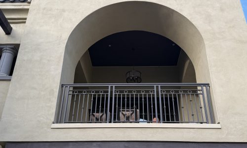 Due to the height of certain sections of the building, specialized access equipment was required. A boom lift was used to safely reach higher elevations, while a smaller manlift was utilized within courtyard areas where space was more limited. This approach allowed the crew to work efficiently while maintaining safety and minimizing disruption to residents.