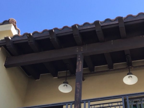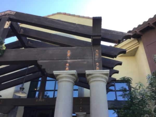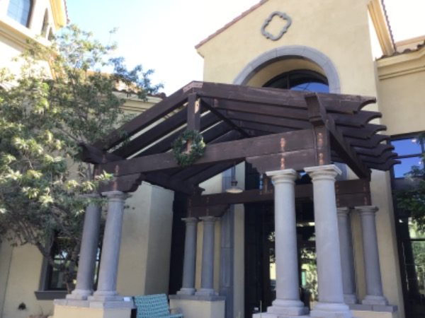 Before starting the project, our team surveyed the area and took pictures of what required attention. The stained trim and other wooden features were faded from year of sun exposure.