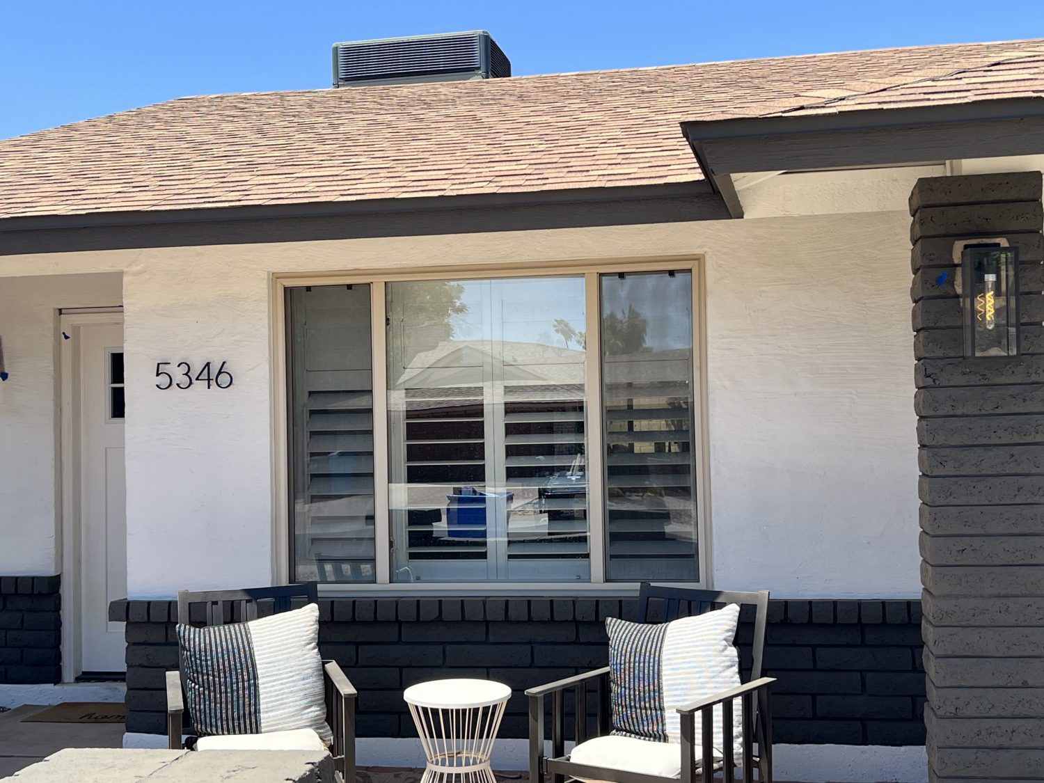 This was part of a larger effort by the homeowner to modernize their property with a clean white finish. Notice how the address numbers and outdoor furniture change between photos. This is why exterior painting is so vital to home ownership. A new paintjob can open brand new possibilities in home decor. For more projects like these, check out our North Scottsdale Painting Portfolio here. And if you’d like a free estimate, just call 480-374-1762