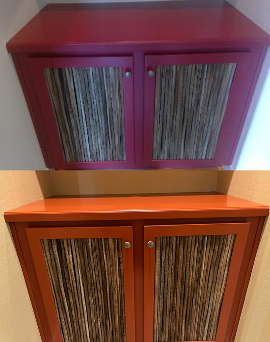 To the right we have a sample wall-mounted cabinet repainted by our team. While the old color scheme began with bold pink, it had become faded and darkened over time. Rather than stick to a 20th century retro aesthetic, the client wanted to repaint the cabinets with a fresh new color that would better compliment the tan color scheme followed by the walls and furnishings. Repainting cabinets is just one of the many services offered by CertaPro Painters of North Scottsdale. For more information on our professional cabinet painting services, check out the comprehensive painting services page here.