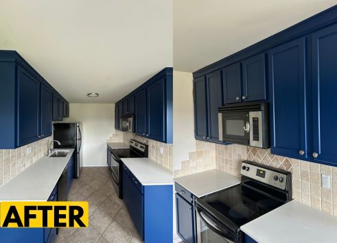 These dated cabinets were ready for a refresh to along with the clean white countertops recently installed.