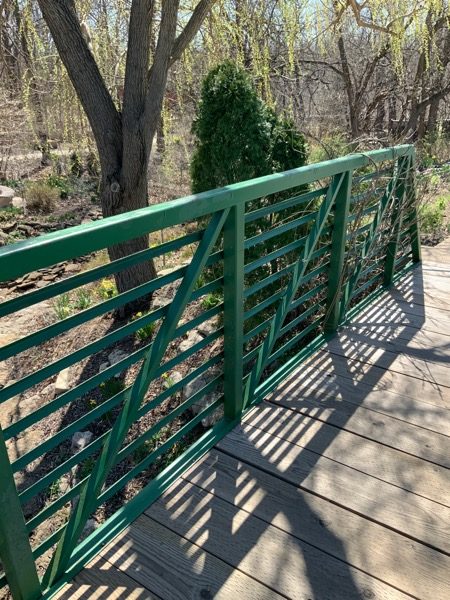 Project: We did this project for the City of Overland Park KS. The work took place at the Arboretum and Botanical gardens. The bridge is 40 feet long and stretches over a creek. This is the Claude Monet Garden and is to match the bridge in the painting “The Water Lily Pond”.