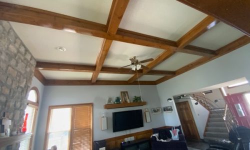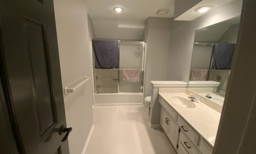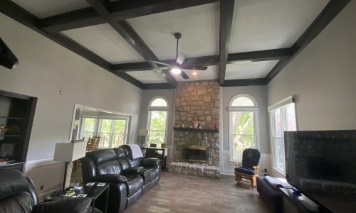 Project Involvement: The project encompassed a wide array of tasks to revitalize the space. Walls and doors were painted anew, while trim was meticulously refreshed. The ceiling underwent a significant change, getting rid of popcorn textures and gaining a knockdown finish. Cabinets and vanities were transformed from stain to paint, giving them a modern feel. This conversion also extended to the ceiling beams and other trim. The process involved thorough cosmetic improvements like filling nail holes and addressing old anchor spots, guaranteeing a flawless outcome.