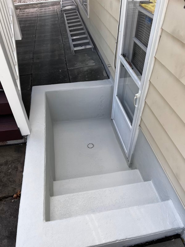 Here is a before and after of a set of concrete steps our team painted.