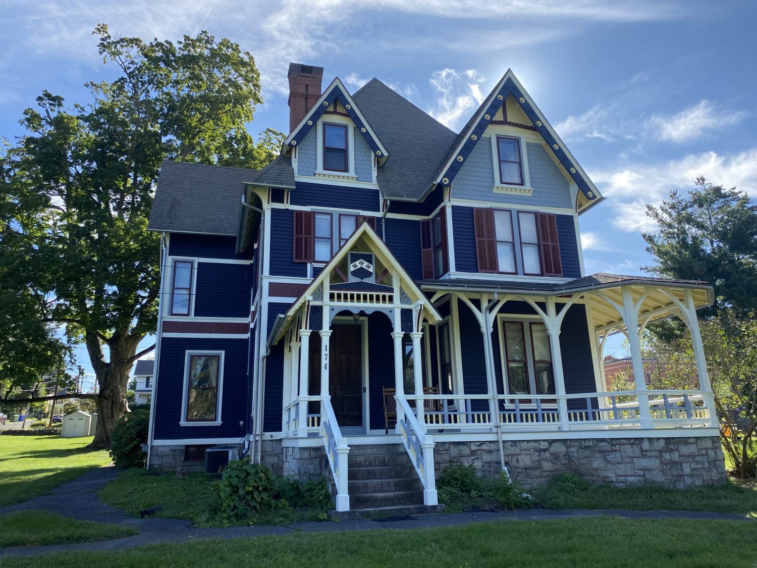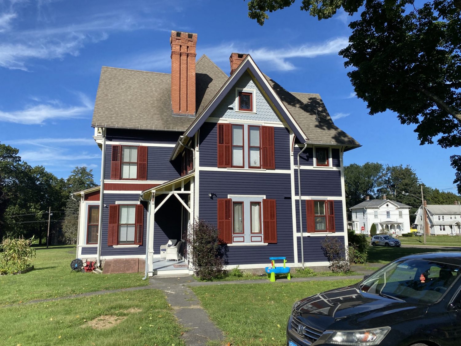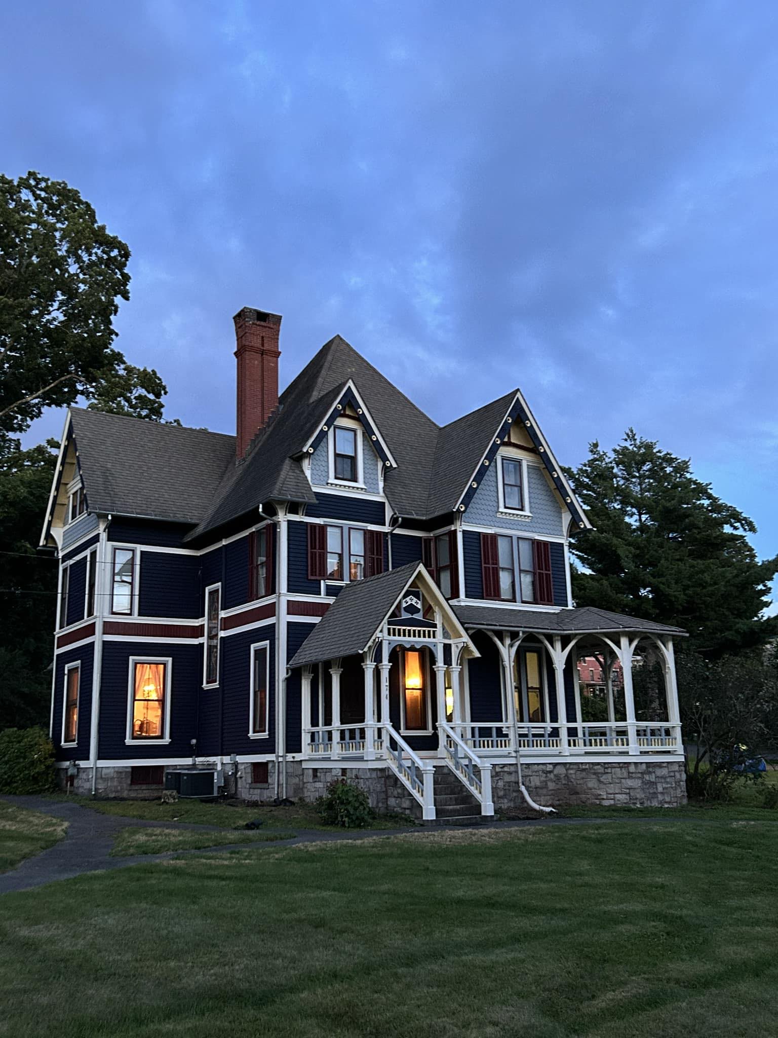 This beautiful victorian in Bristol received a complete multi-color repaint. This required a good deal of prep and a hydraulic lift to get to every bit of the work space. The prep work involved scraping, wood replacement, priming, and sanding to make sure it was 100% ready to receive a fresh coat of paint. Take a look at a few of our “during” photos to give you an idea of the scale of this residential repainting project.