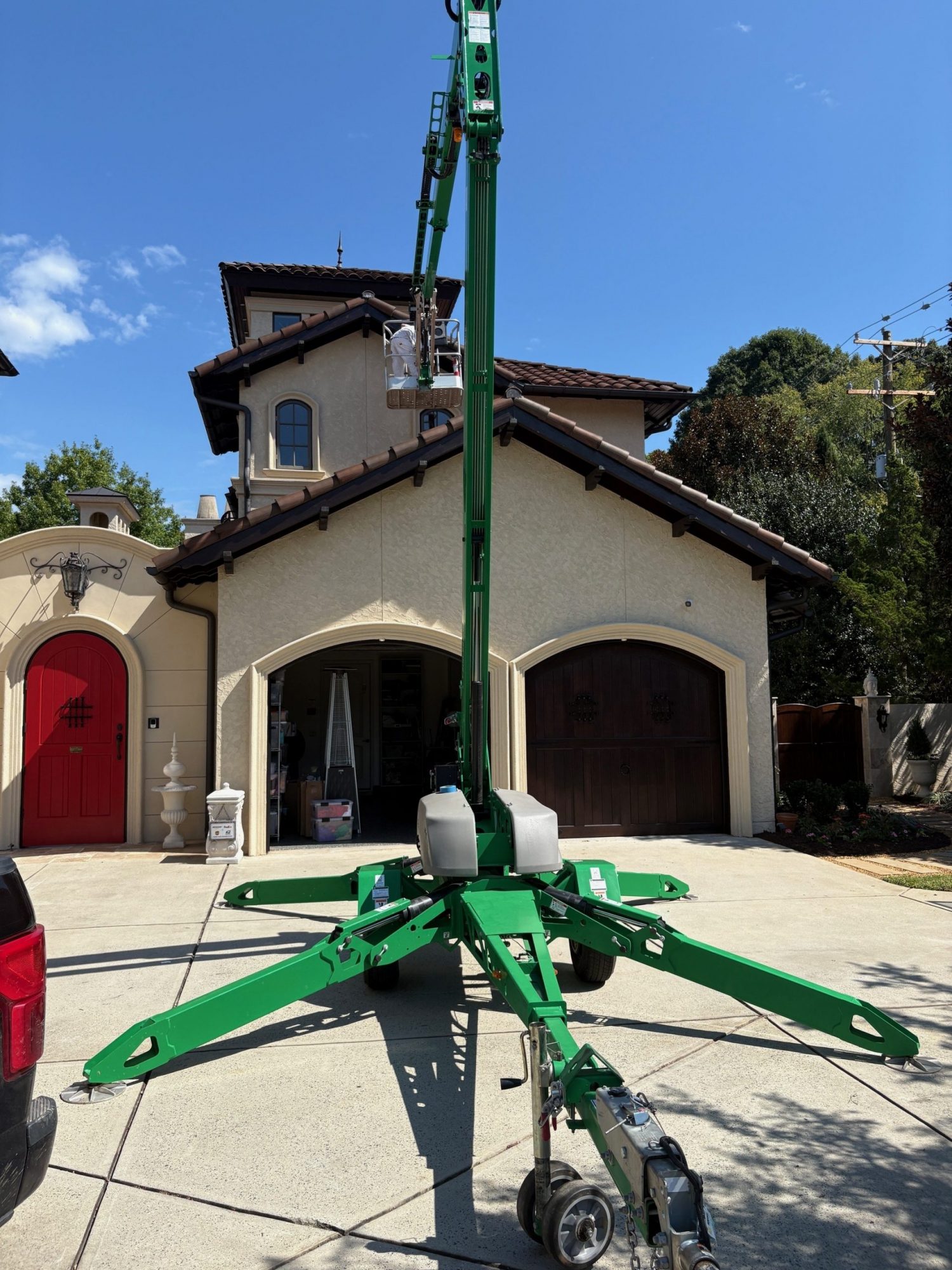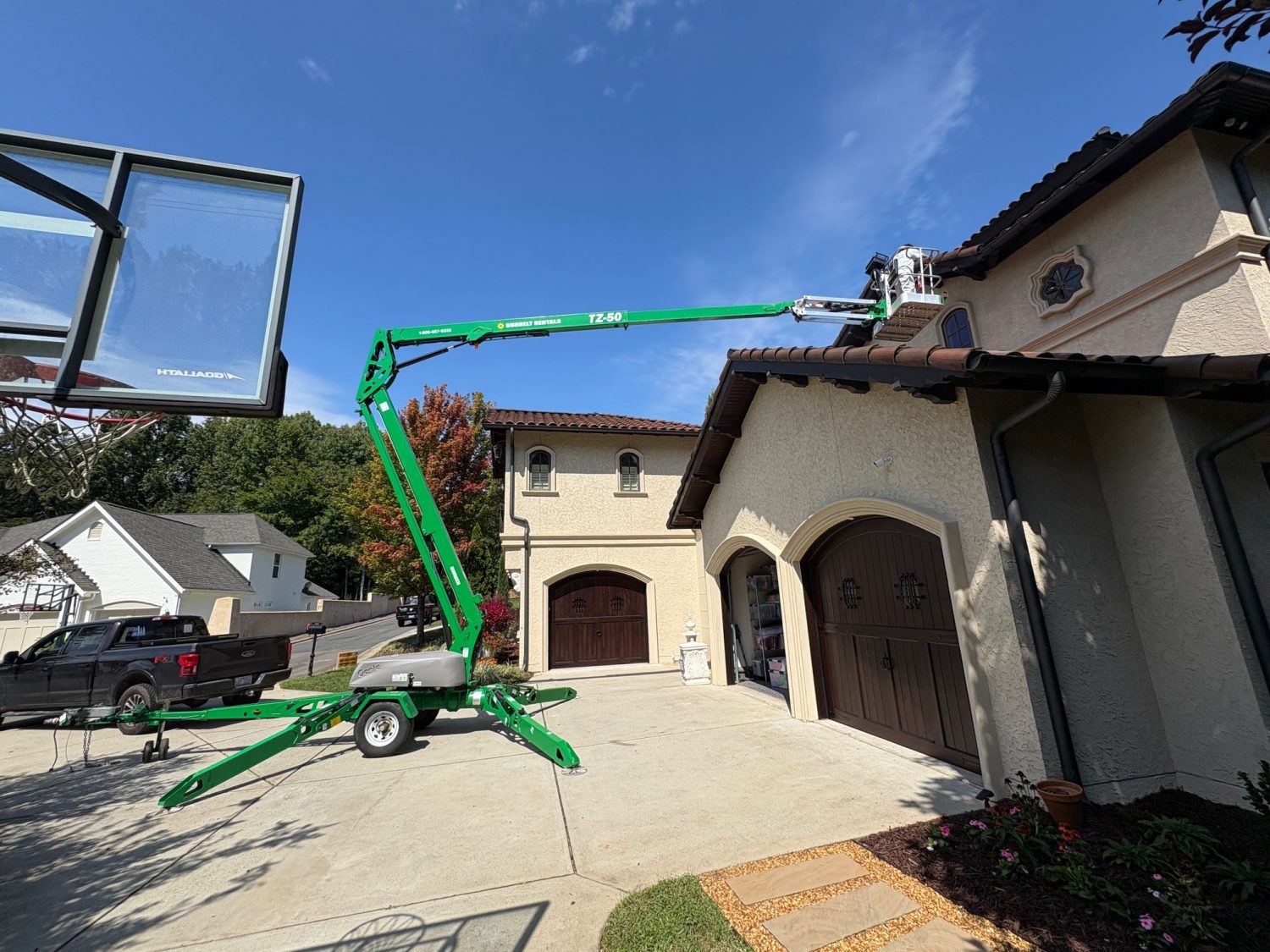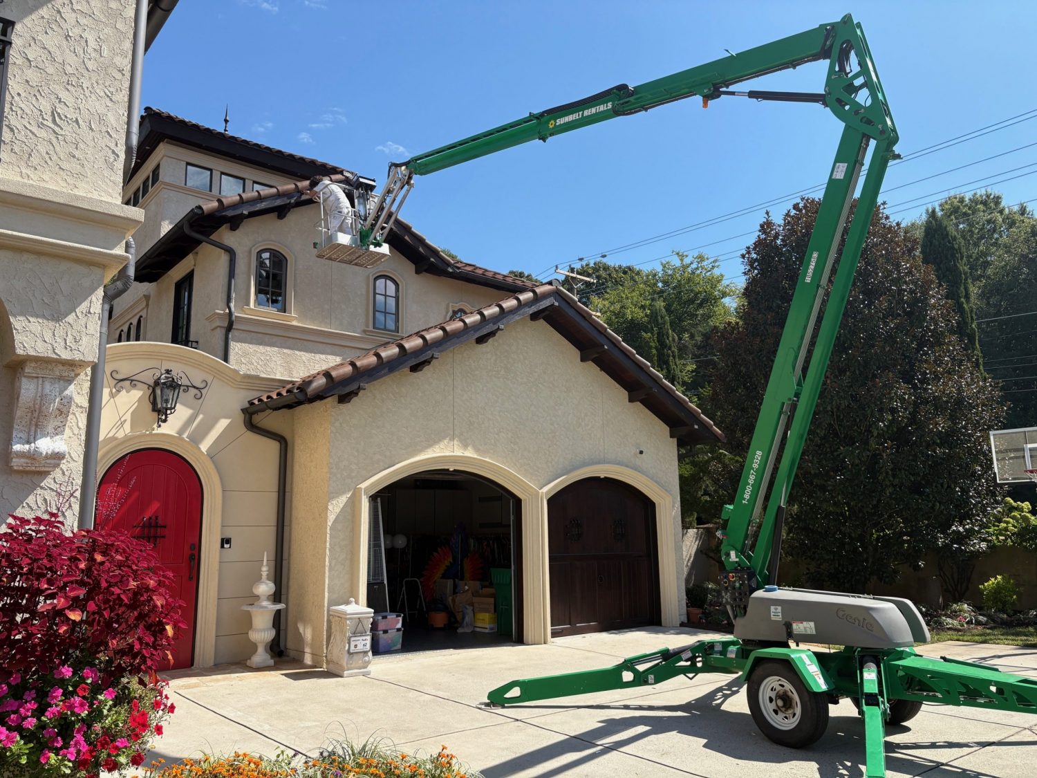 The Challenges: Because some second-story soffits were above the Spanish tile roof, we could not access them safely with a ladder alone. We utilized a towable boom lift to safely reach these areas without damaging the roof.