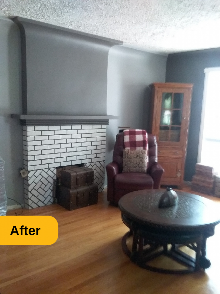 Interior: Your furniture and décor are placed in the center of the room, covered with new plastic, and all flooring is protected with drop cloths.