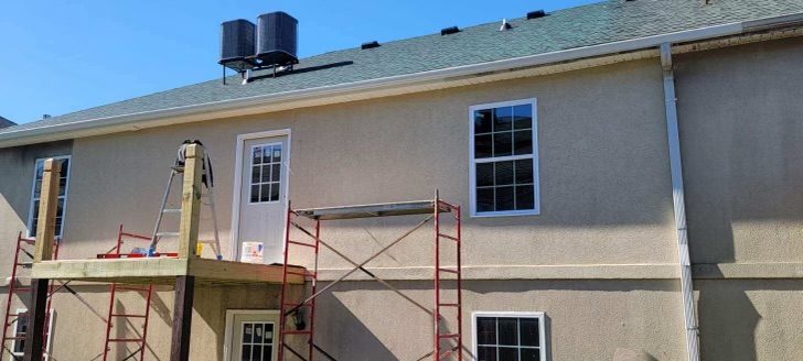 This project included removing exterior damaged surfaces and rebuilding the EFIS system to match the pre-existing surface. Getting the right color was critical throughout the whole process.