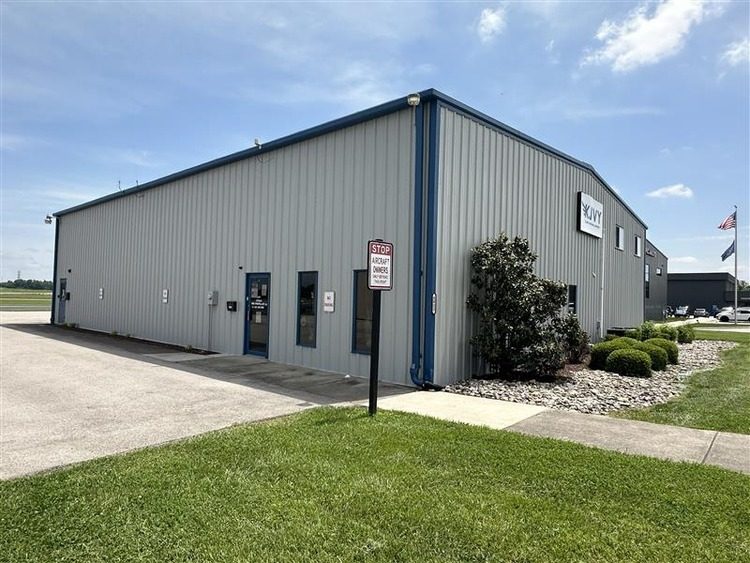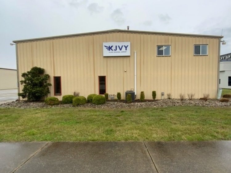 We used Sher-Cryl-Acrylic-Semi-Gloss for the metal surfaces of the hangar. The gray is is Silverpoint (SW7653) and the blue trim is Endless Sea (SW9150).