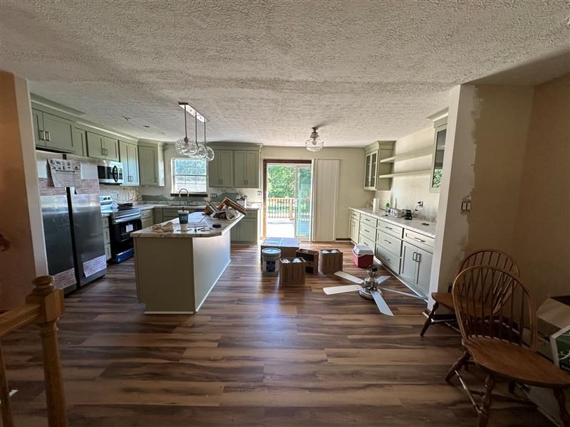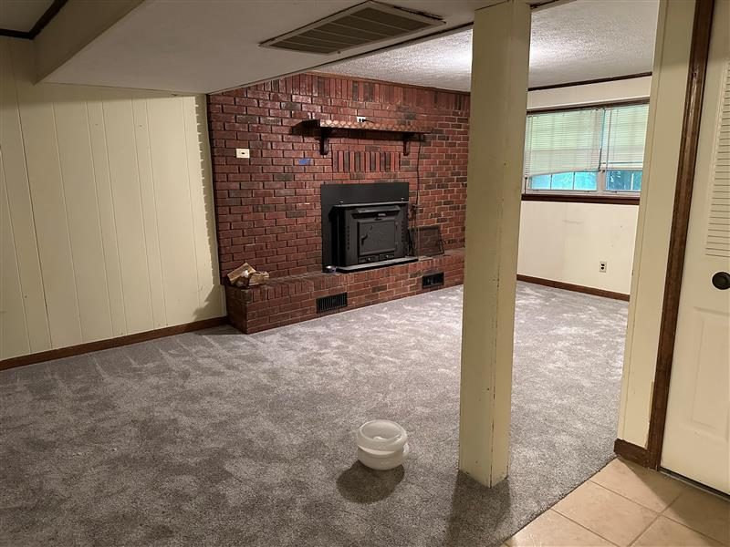Neutralizing and lightening the home to be put on the market soon. First floor wall color: Pearly White. Basement walls: Dover White. Trim: Pure White. Basement brick fireplace: GreenBlack. Shelf on fireplace: Tricorn black.