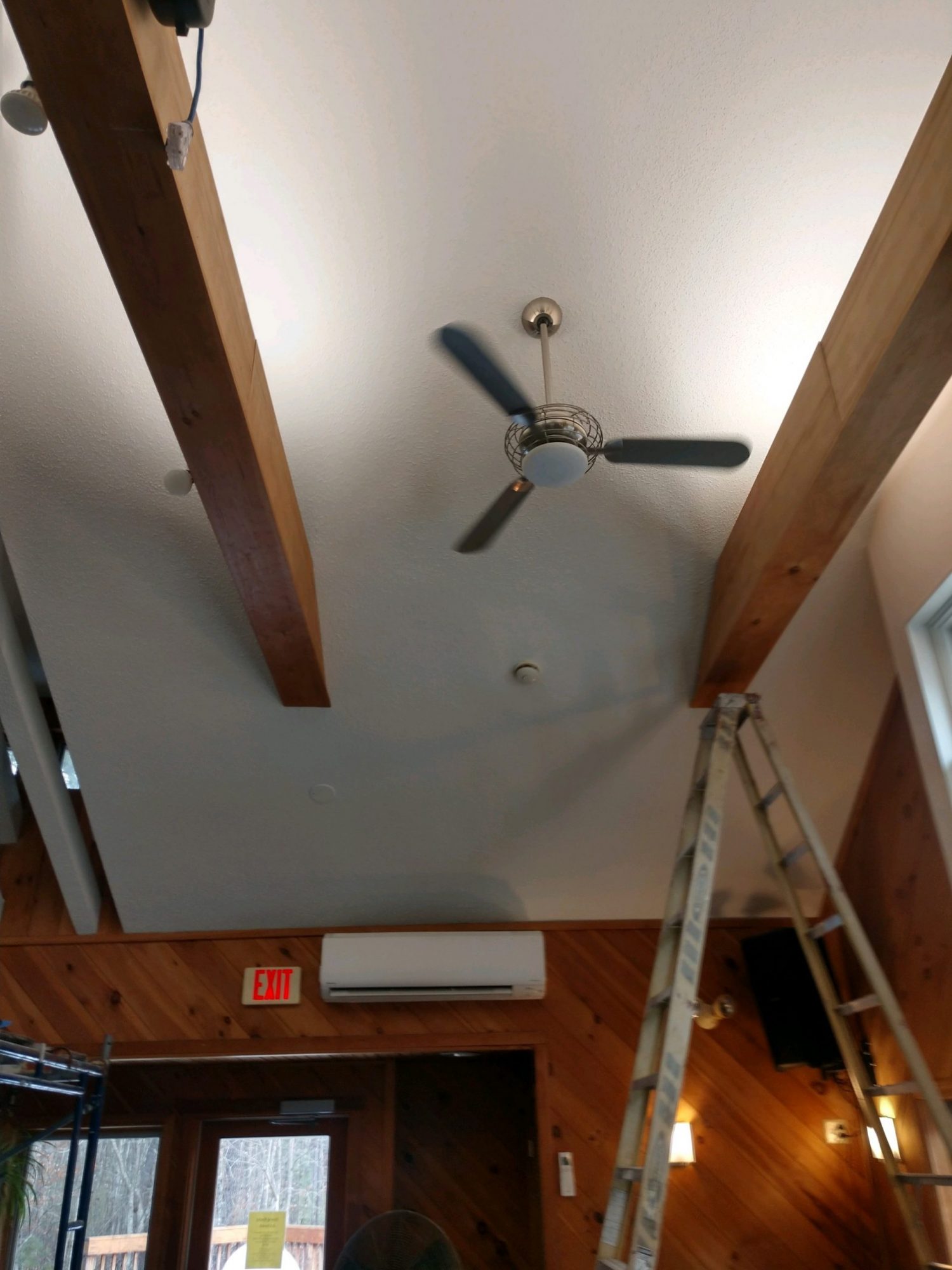 Through hard work over the course of three days, CertaPro Painters of Southern New Hampshire completed an entire ceiling refresh. This included working around wooden beams that lined the length of the ceiling. The team executed expert drywall repairs and best-in-industry painting and caulking to restore the Calumet Lutheran Ministries ceiling.