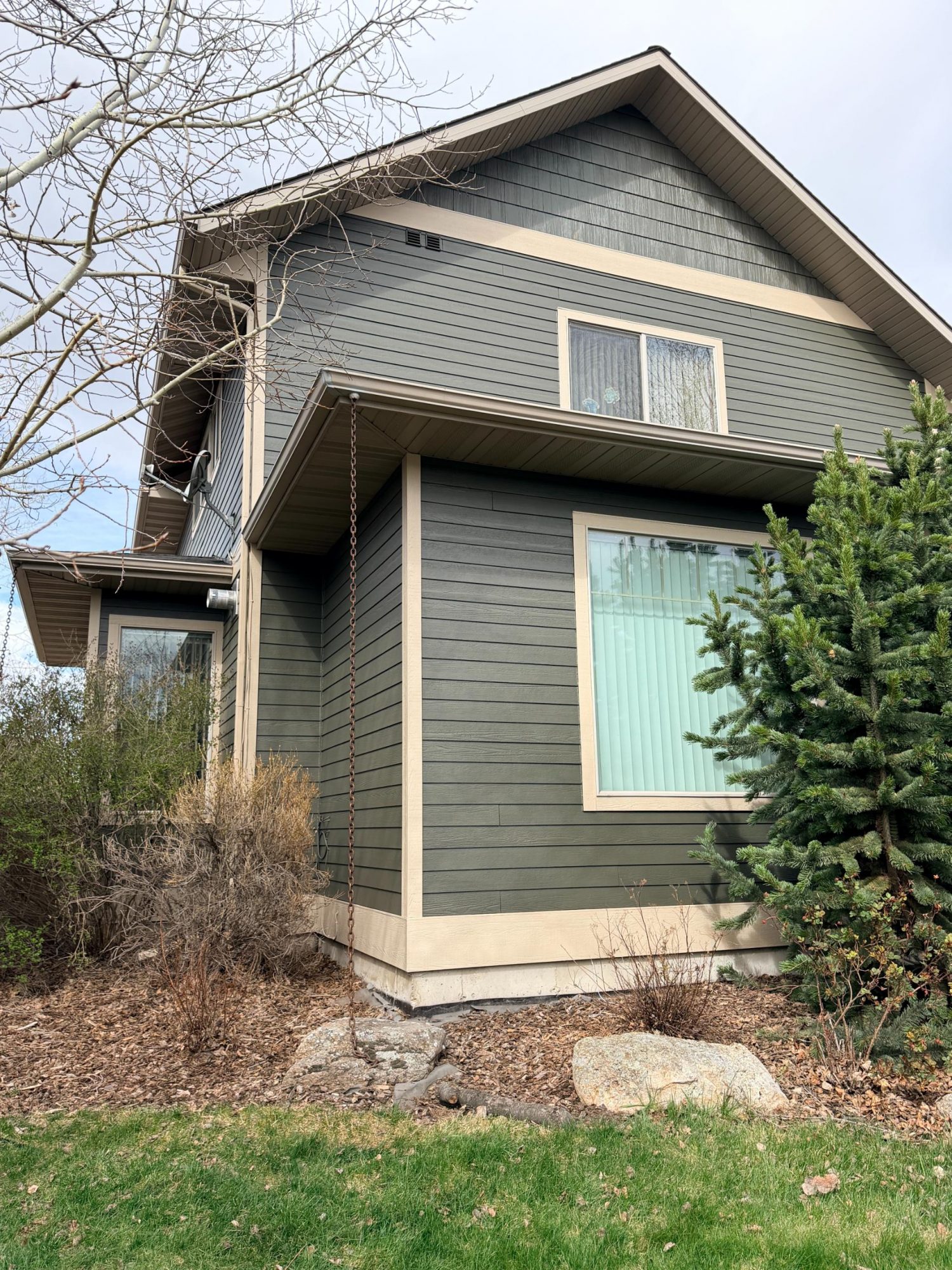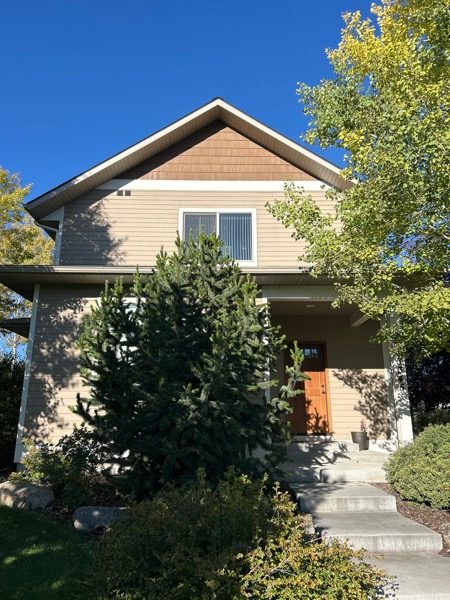 This home in Bozeman, Montana was completed by our team in April 2026. The exterior transformation features a rich, earthy palette designed to complement the surrounding landscape. The siding was finished in SW2846 Roycroft Bronze Green with a low lustre sheen, while the trim was accented using SW9111 Antler Velvet in a smooth satin sheen. To add a bold focal point, the entry door was coated in SW6677 Goldenrod with a semi-gloss sheen. Our crew carefully applied each element to create a cohesive and updated exterior appearance.