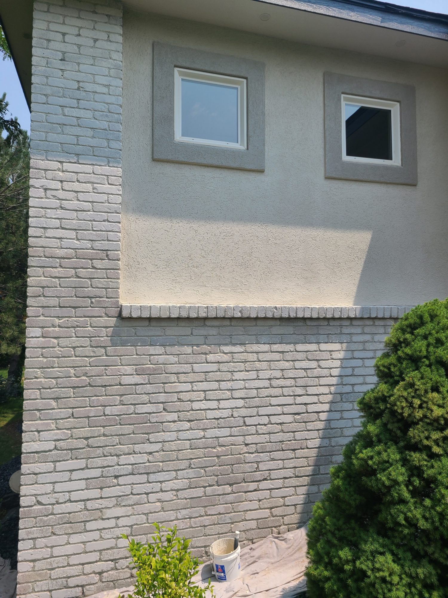 Limewashing requires precision and patience. Our experienced painters applied the limewash in controlled strokes, methodically working around the entire exterior to ensure even coverage and texture. The transformation unfolded over several days, with each layer of limewash adding depth and character to the brick.