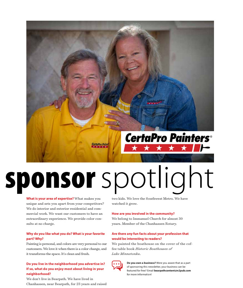 Hello, my name is Kelly, (Woody sang it 30 times in an episode of Cheers)! I grew up in Minnetonka and St. Louis Park I spent 25 years in the wine business starting in sales and worked up to management and marketing, with a strong focus on customer service. For the next chapter, my wife Sara of 33 years and I bought CertaPro Painters in 2012.