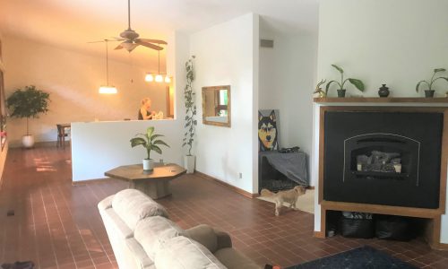Process: Over the course of one and a half weeks, our team tackled a variety of different projects. The popcorn ceilings were removed and a textured ceiling was applied. Wallpaper was removed in all of the rooms – they were skimmed, sanded, primed and ready for painting. Our team removed a section of wall in the kitchen to open up the space for the view. A few door frames were removed to open up space and promote an open concept flow of the household. Dated, unnecessary trim was removed and some drywall repairs were done. Our team painted the main living area and master bedroom, while the homeowners will be painting the other rooms. After our work was completed, the home is now looking beautiful and is ready for the young couple to start their projects.