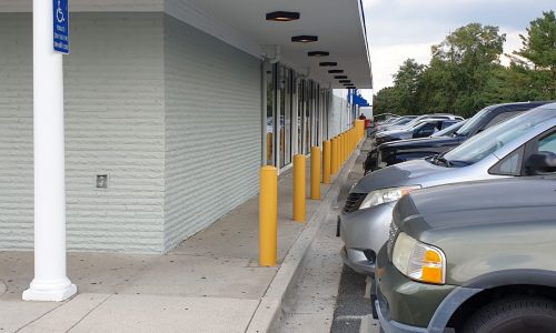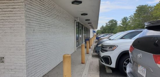 CertaPro Painters® of Springfield, VA was contacted in October 2021 to paint a retail facility located in Alexandria, Virginia. The warehouse building was home to two retail stores, a thrift store, and a grocery store, The building consisted of 23,870 square feet of exterior walls, in addition to safety bollards, railings, window highlights, and trim. Before arriving, the exterior of the building was showing wear and tear from weather and the normal aging process. Paint was chipping, rust was showing, and many of the building’s bricks were missing mortar.