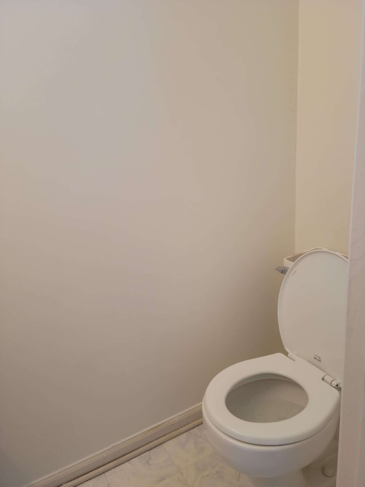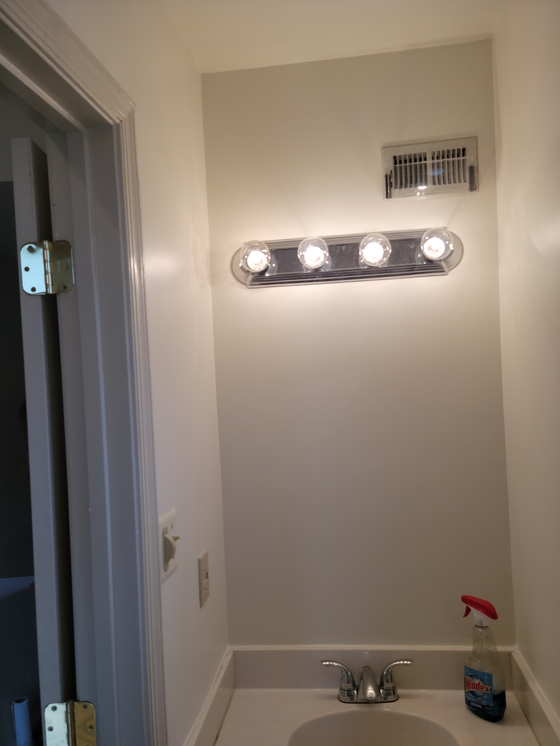 Although it’s just a powder room, this was actually a big job. For the starter, It had two levers of wallpaper, under the wallpaper it had mold. In a corner, they had placed three layers of wallpaper to cover a hole in the wall!! There was another hole behind the light fixture. The light fixture was glued to the wall and it did not have an electrical box, which is a fire hazard.