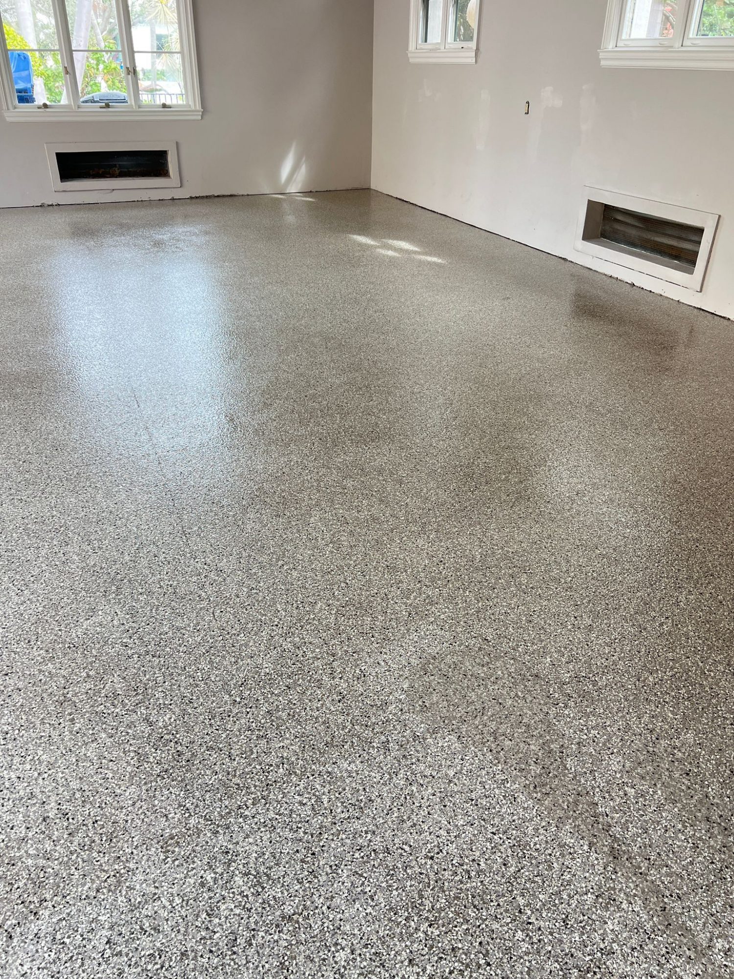 Garage floors take on constant wear and tear from vehicles, heavy equipment, oil stains, and Florida’s humidity. Our epoxy and polyurea garage floor coatings provide a smooth, easy-to-clean surface that resists chemicals, abrasions, and tire marks. With optional decorative flakes or slip-resistant finishes, your garage floor will not only perform better but also look polished and professional.