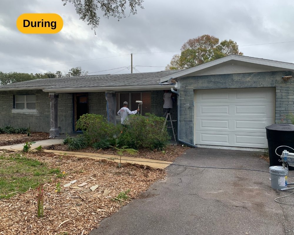 We recently had the pleasure of repainting the exterior of a local St. Petersburg home. Click the arrows to see before, during and after photos of the project.