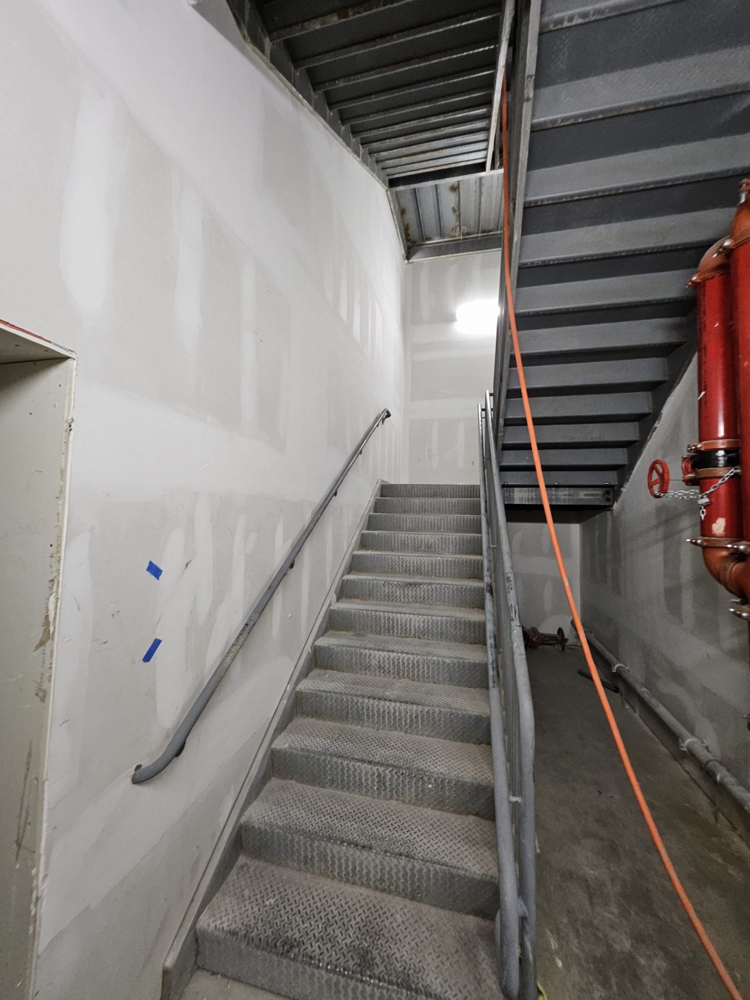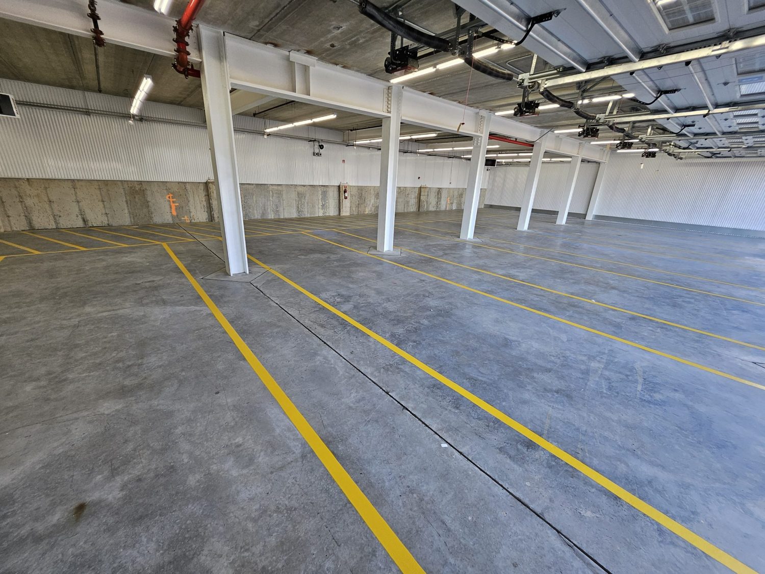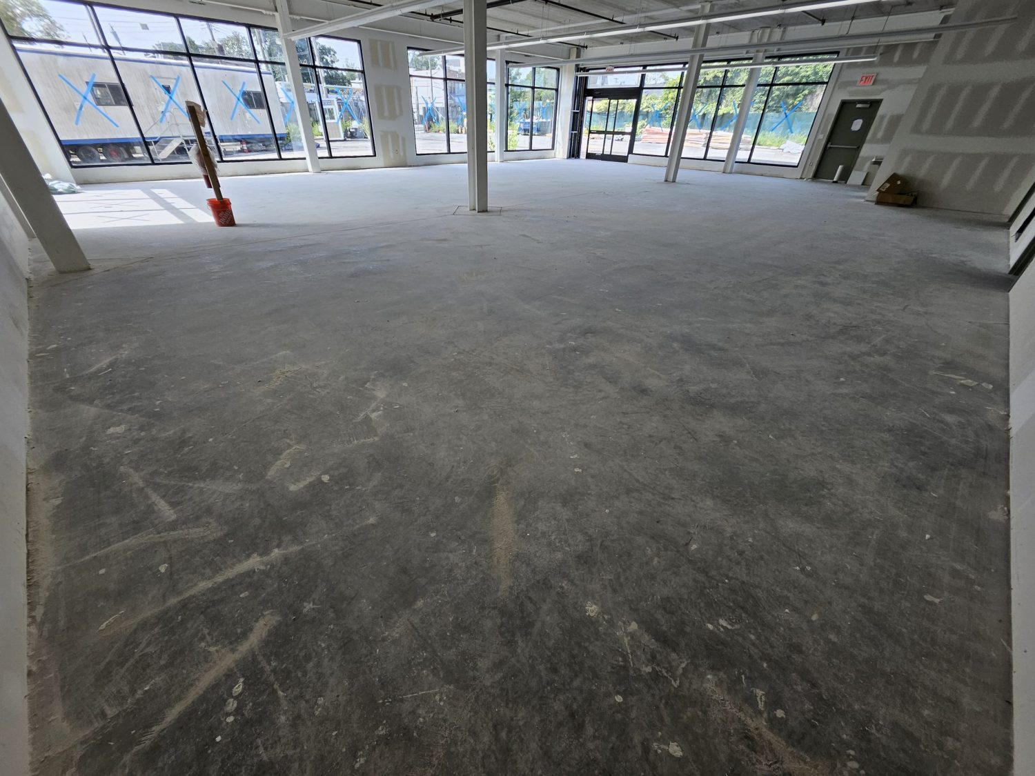 The interior work involved painting and concrete floor staining. The team worked efficiently to complete these tasks, ensuring consistent coverage and a polished, professional look throughout the building. The project also included line striping for parking and other designated areas, which was carried out with precision to ensure safety and organization for future customers of the facility.
