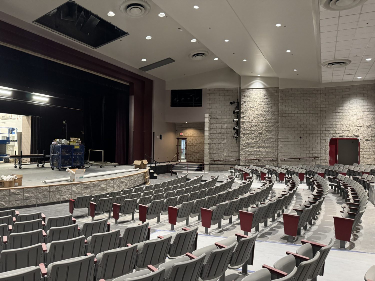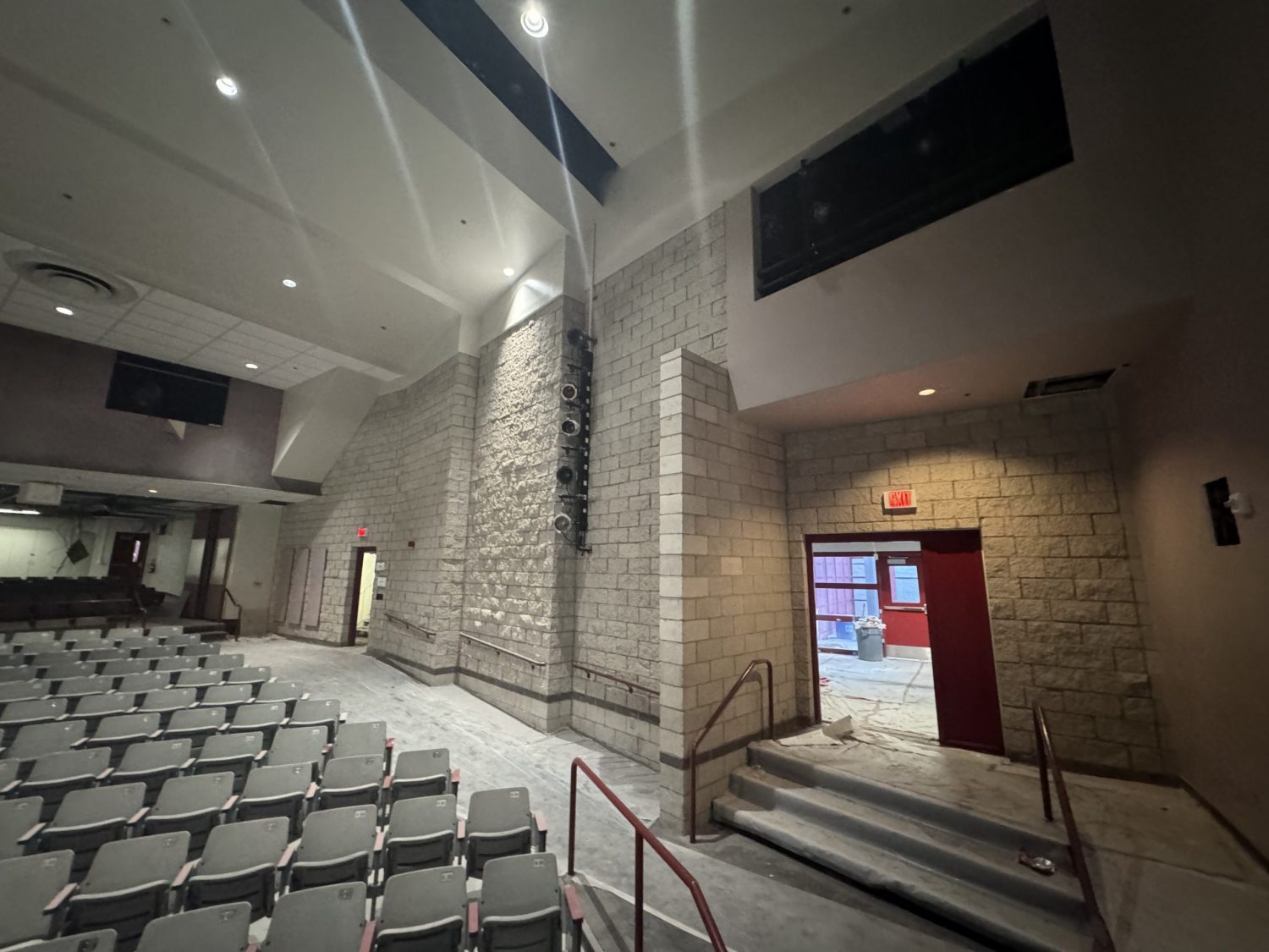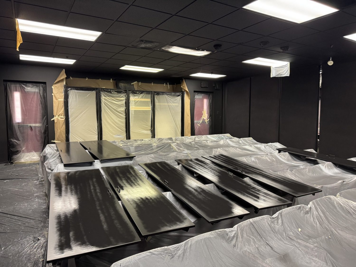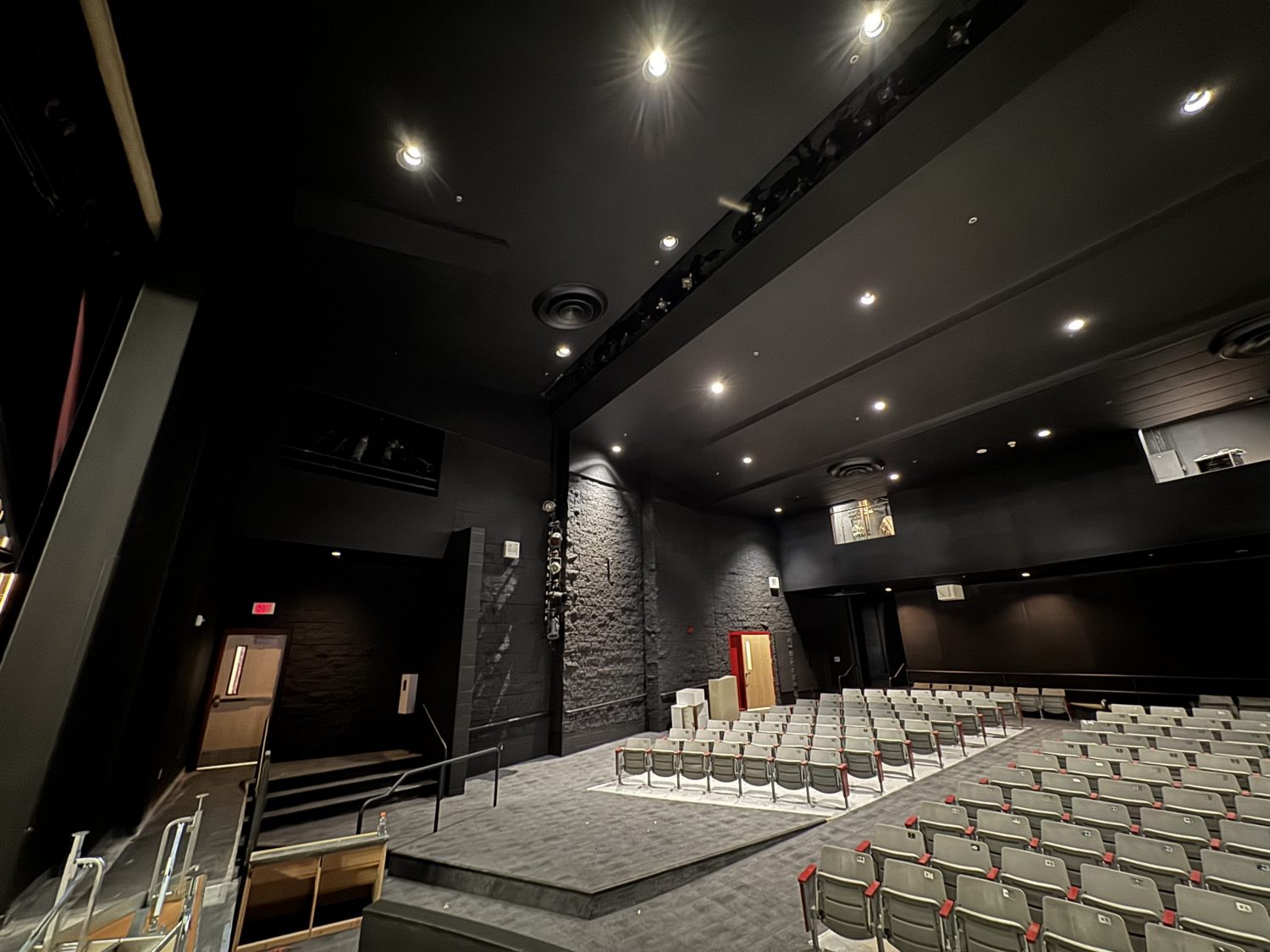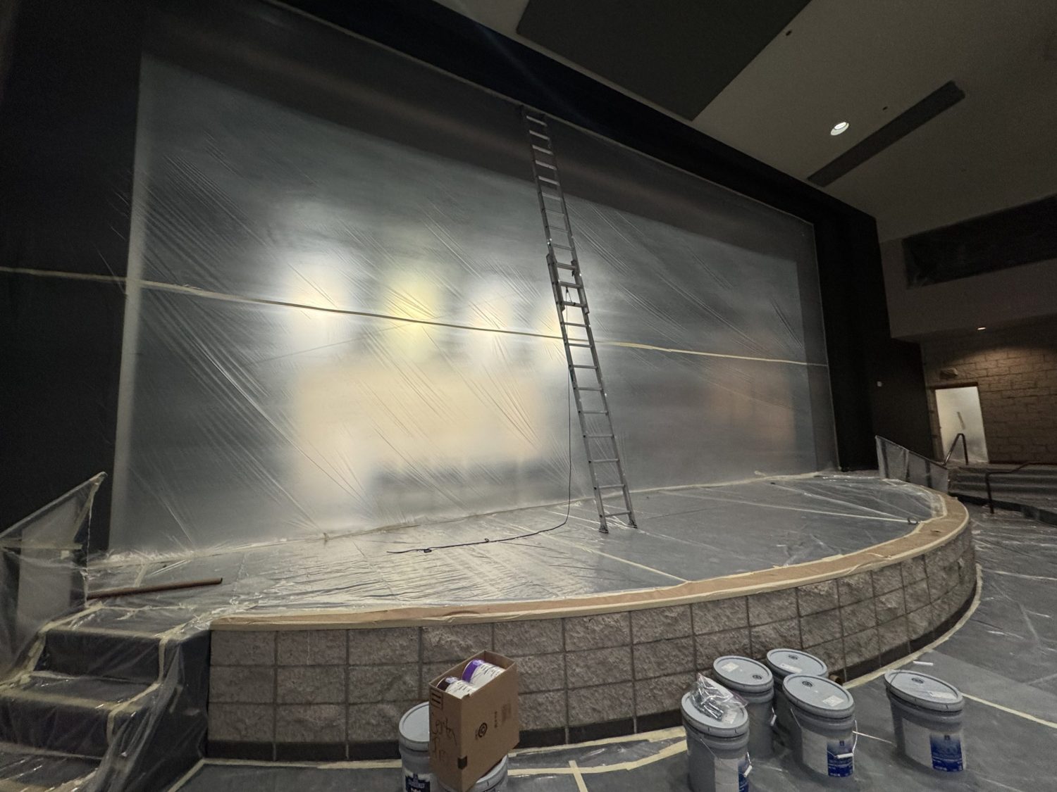 Because this was an active school environment, the team worked around student schedules, limited lighting, and coordination with inspectors and other contractors. Despite these complexities, the project was completed with premium materials, full priming, cohesive finish work, and meticulous attention to detail – resulting in a revitalized, professional-grade performance space for the school.