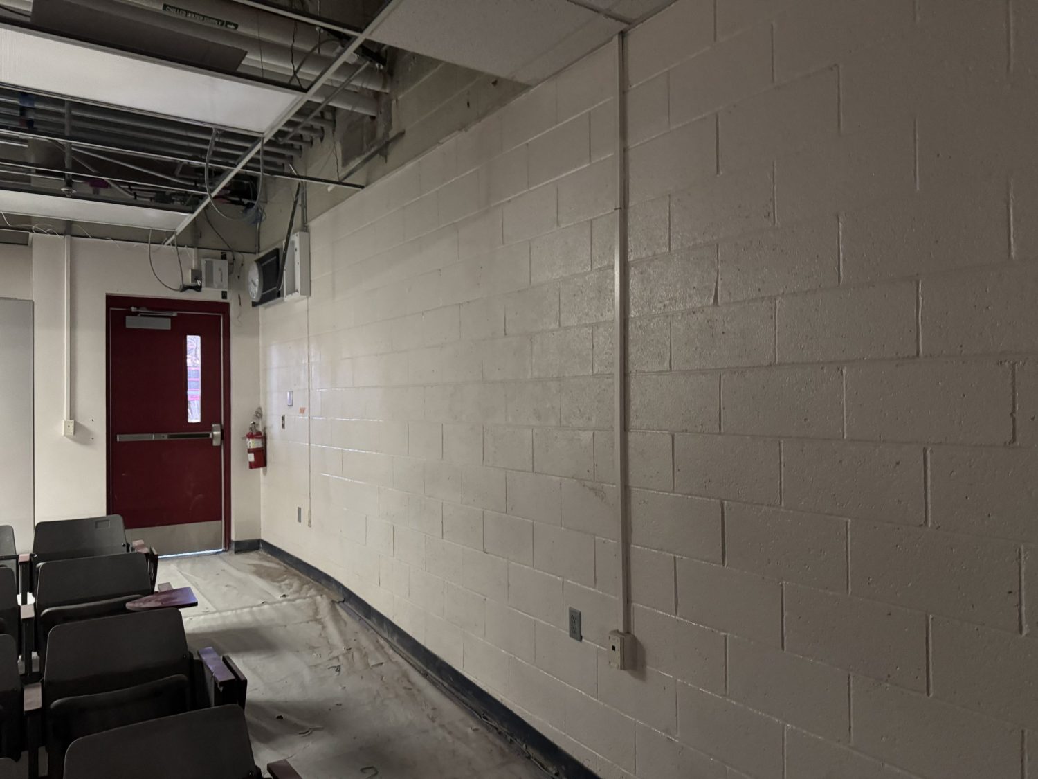 Our team performed a comprehensive repaint of the walls, ceilings, CMU surfaces, drywall, metal railings, acoustic elements, cabinetry, and classroom areas connected to the theater.