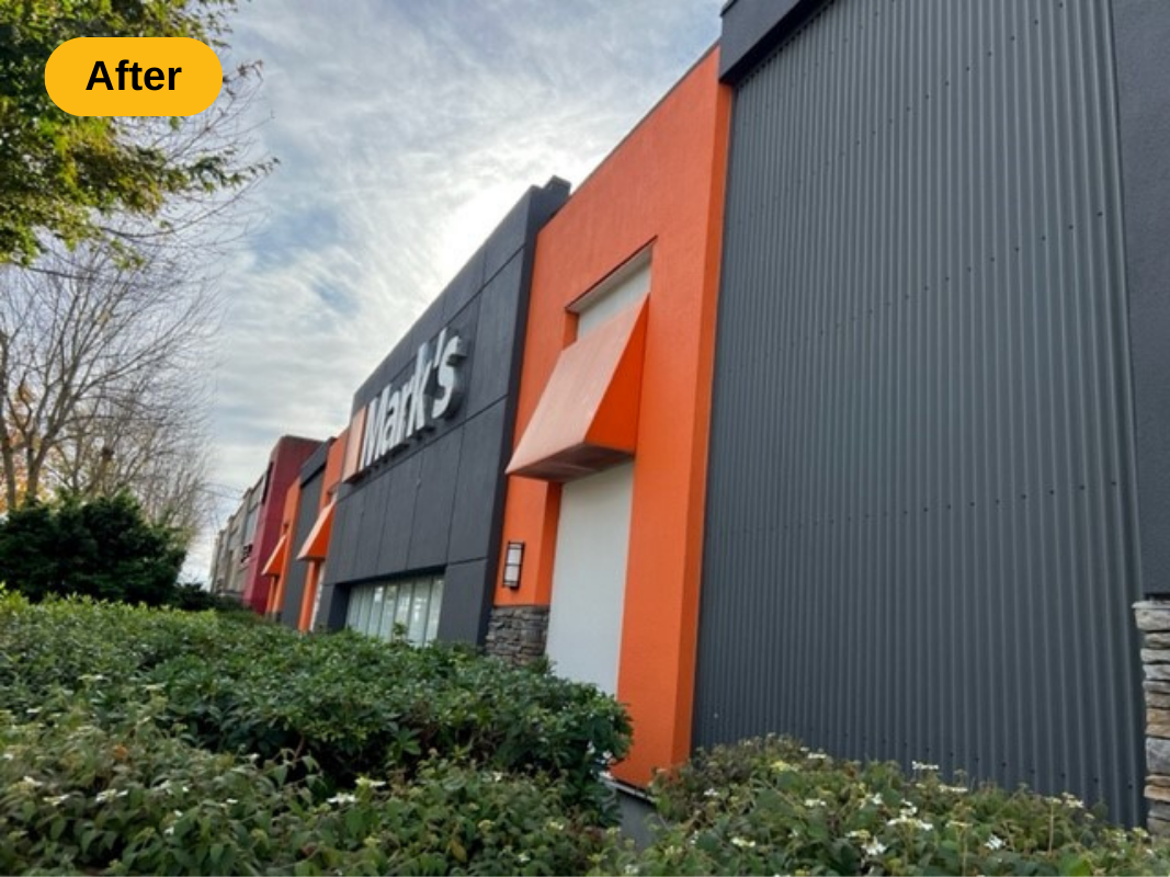 This is one of three Mark’s Work Warehouse exteriors that our team of commercial painting experts recently painted.