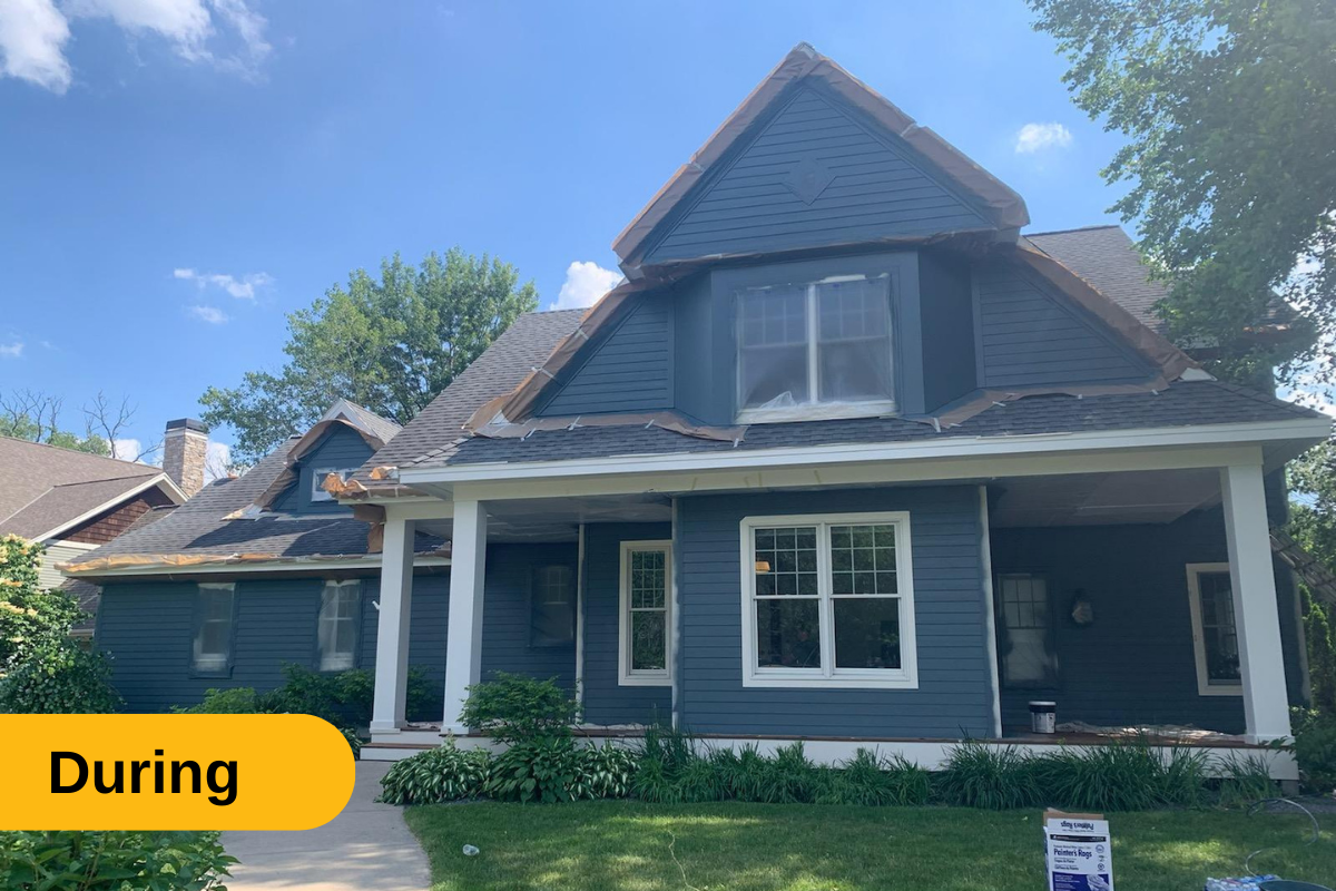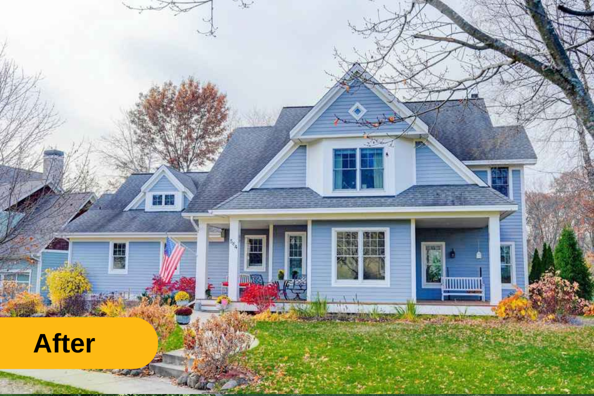 The customer was unhappy with their old color scheme and asked for some suggestions from our color consultant. We suggested changing the area around the 2nd story windows to match the new siding color. The end result looked great and customer was thrilled!