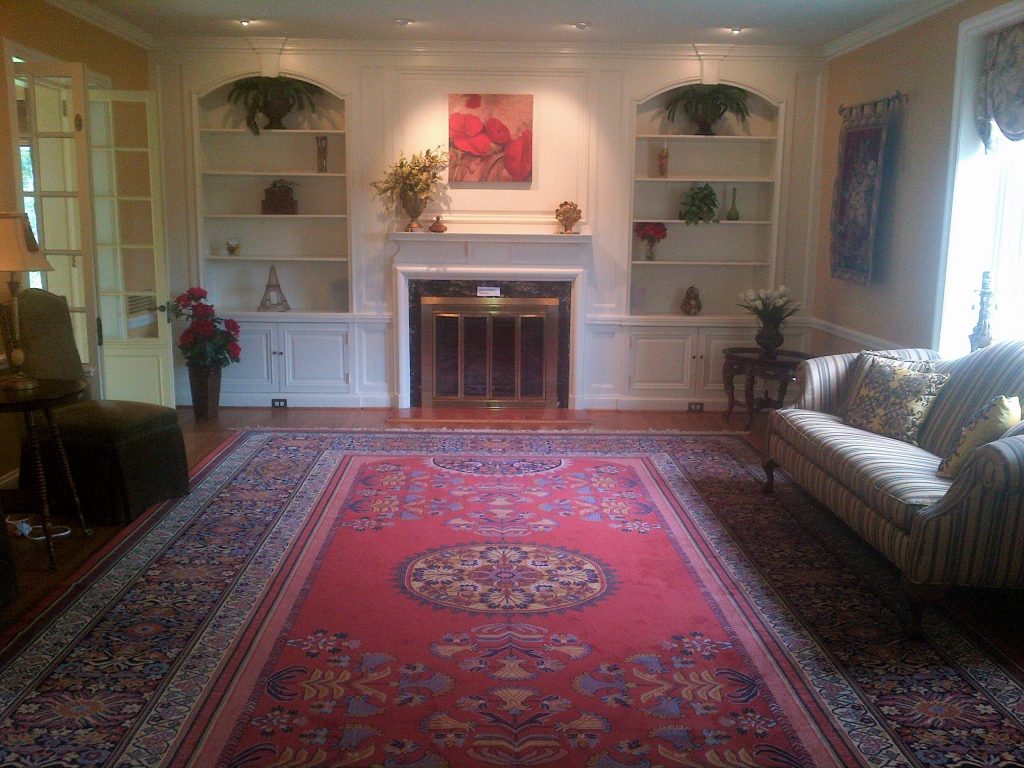Interior: Your furniture and décor are placed in the center of the room, covered with new plastic, and all flooring is protected with drop cloths.