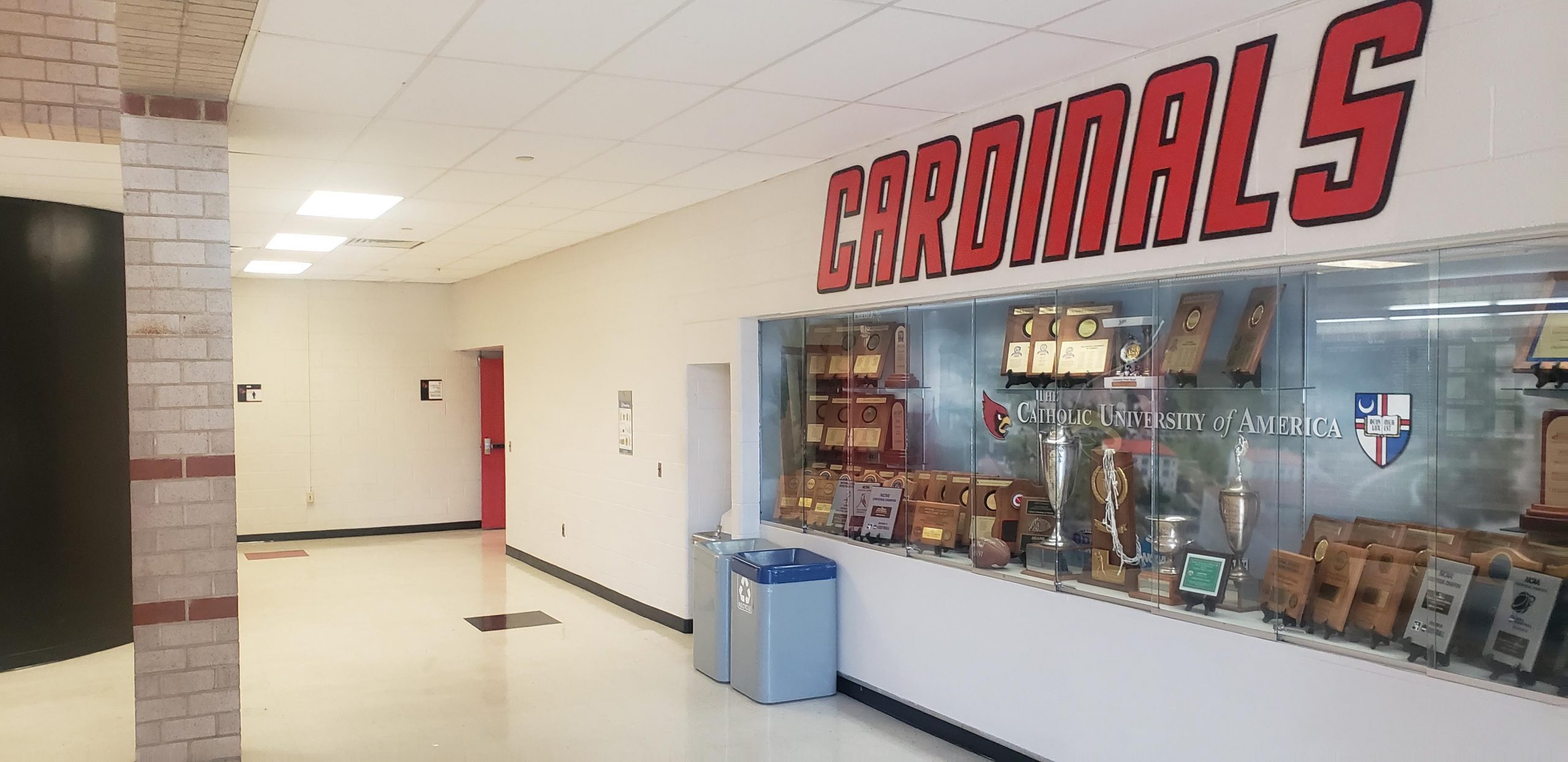 CertaPro Painters, in association with HK Designs, helped CUA (catholic.edu/index.html) rebrand their sports facility with their teams colors. The project was scheduled in advance to be completed while students were out on break and CertaPro delivered the project on time and on budget.
