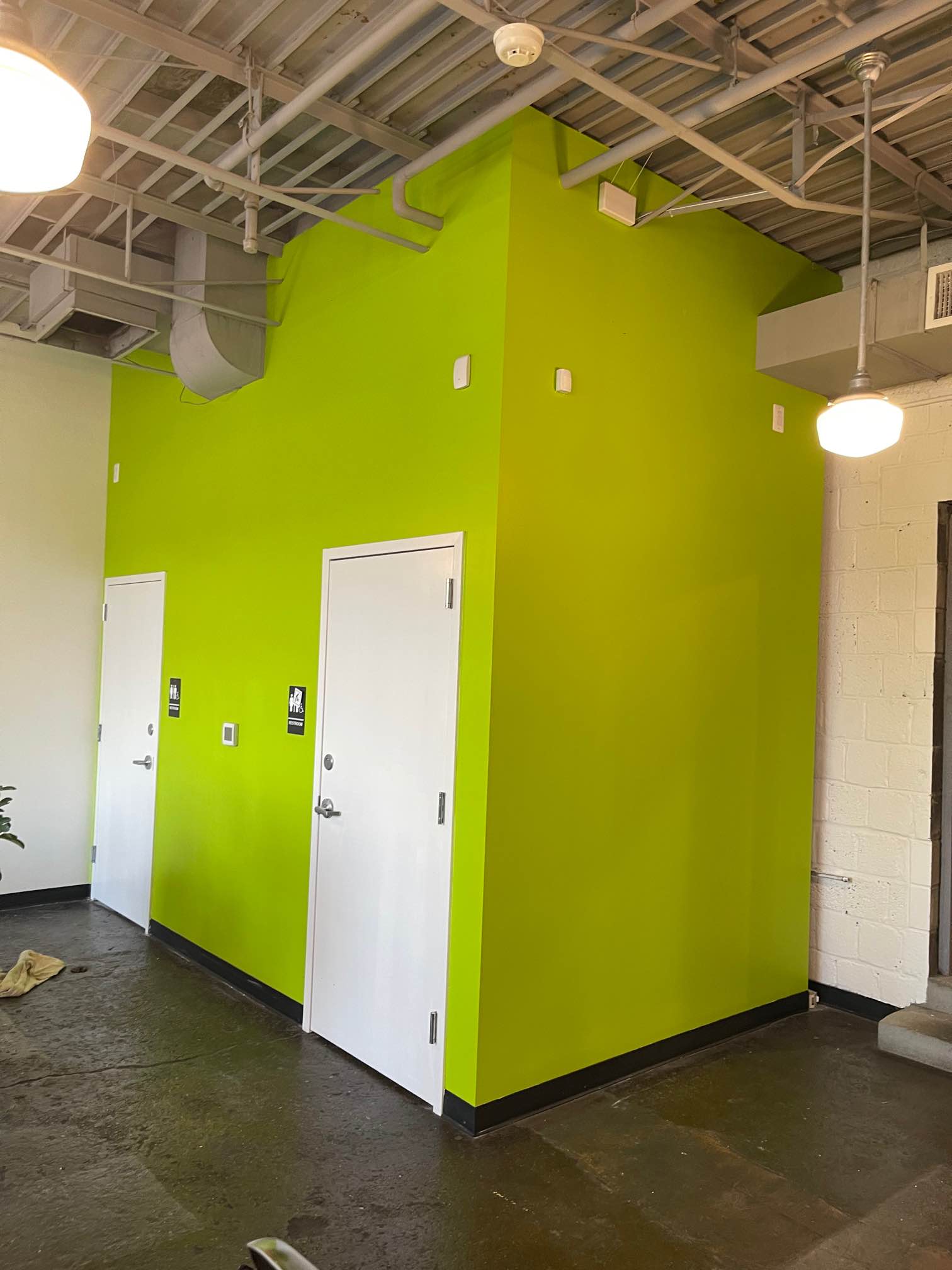 We did a white and green repaint for our client, giving this rustic building a fresh look.