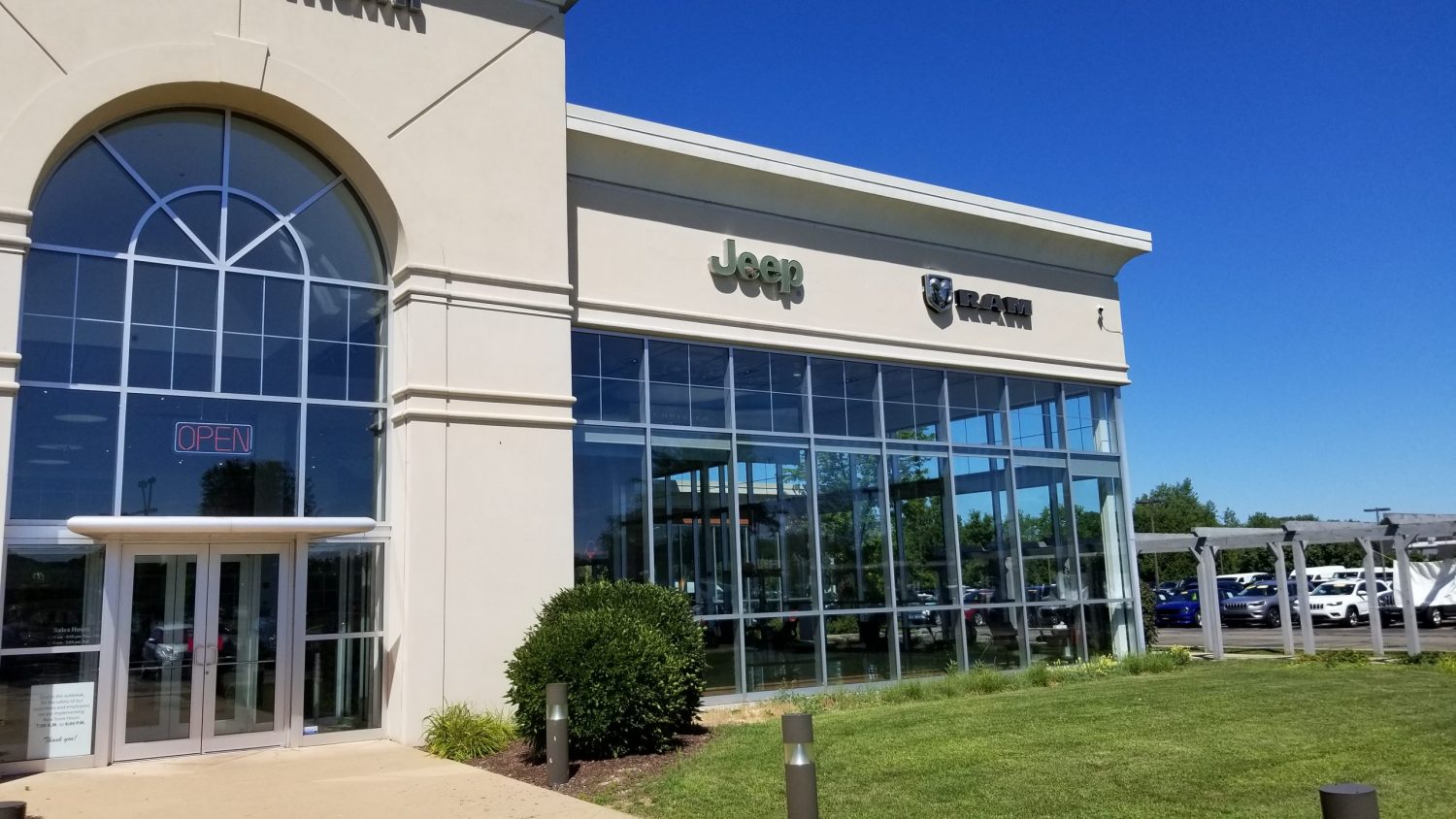 Schlossmann Dodge City is a car dealership in Brookfield, WI. The dealership is part of Schlossman Auto Group which is comprised of 3 dealerships, of which we have been assisting with painting projects for the last 5 years. For this project we worked on the street visible front part of the building including the upper portion of the building around the illuminated street signs and logos.
