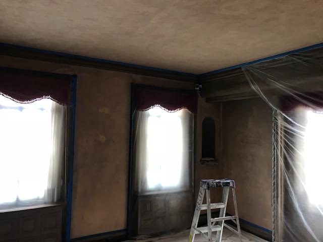 Process: The project included special attention to site protection, followed by preparation and color and texture matching of existing paint work on the walls and ceilings.