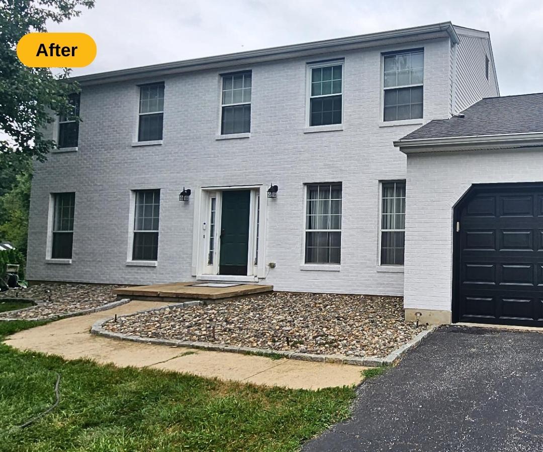 We painted the brick front of a house with limewash (using Romabio Classico Limewash). We also painted the lintels, doors, and door frames all in black.