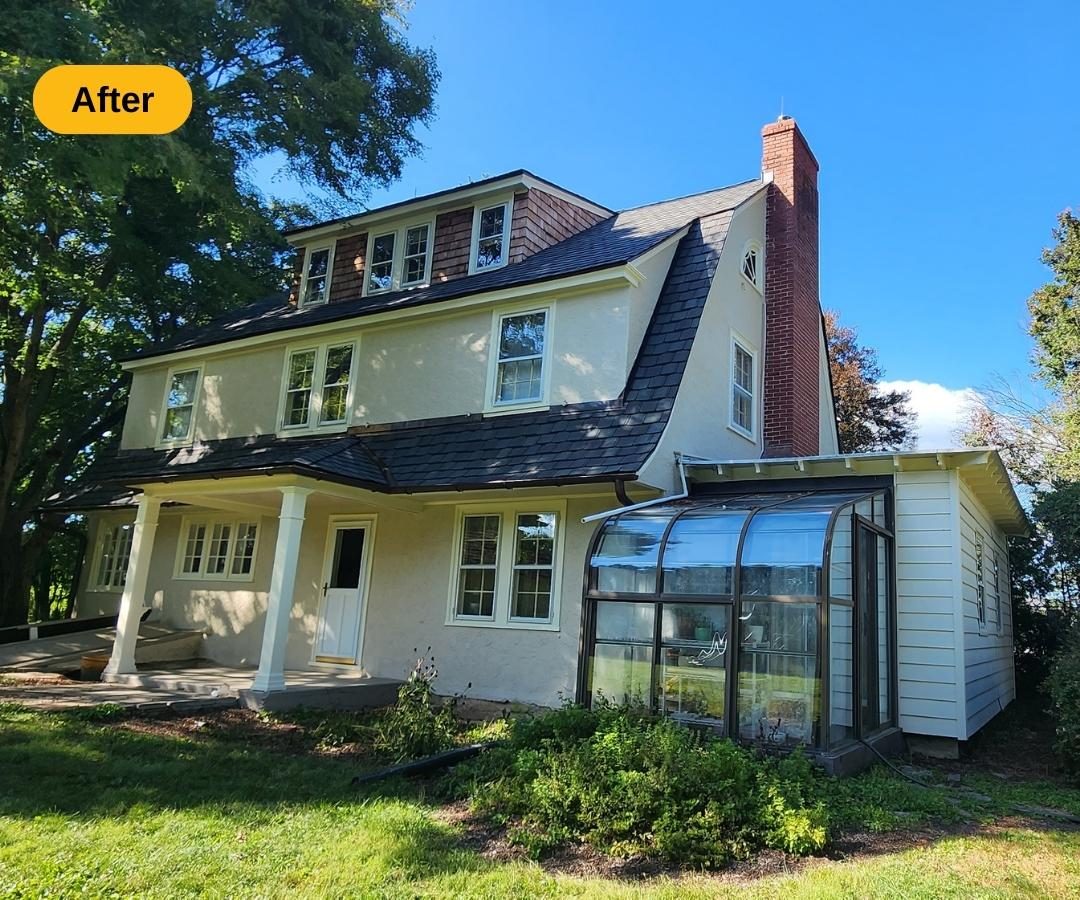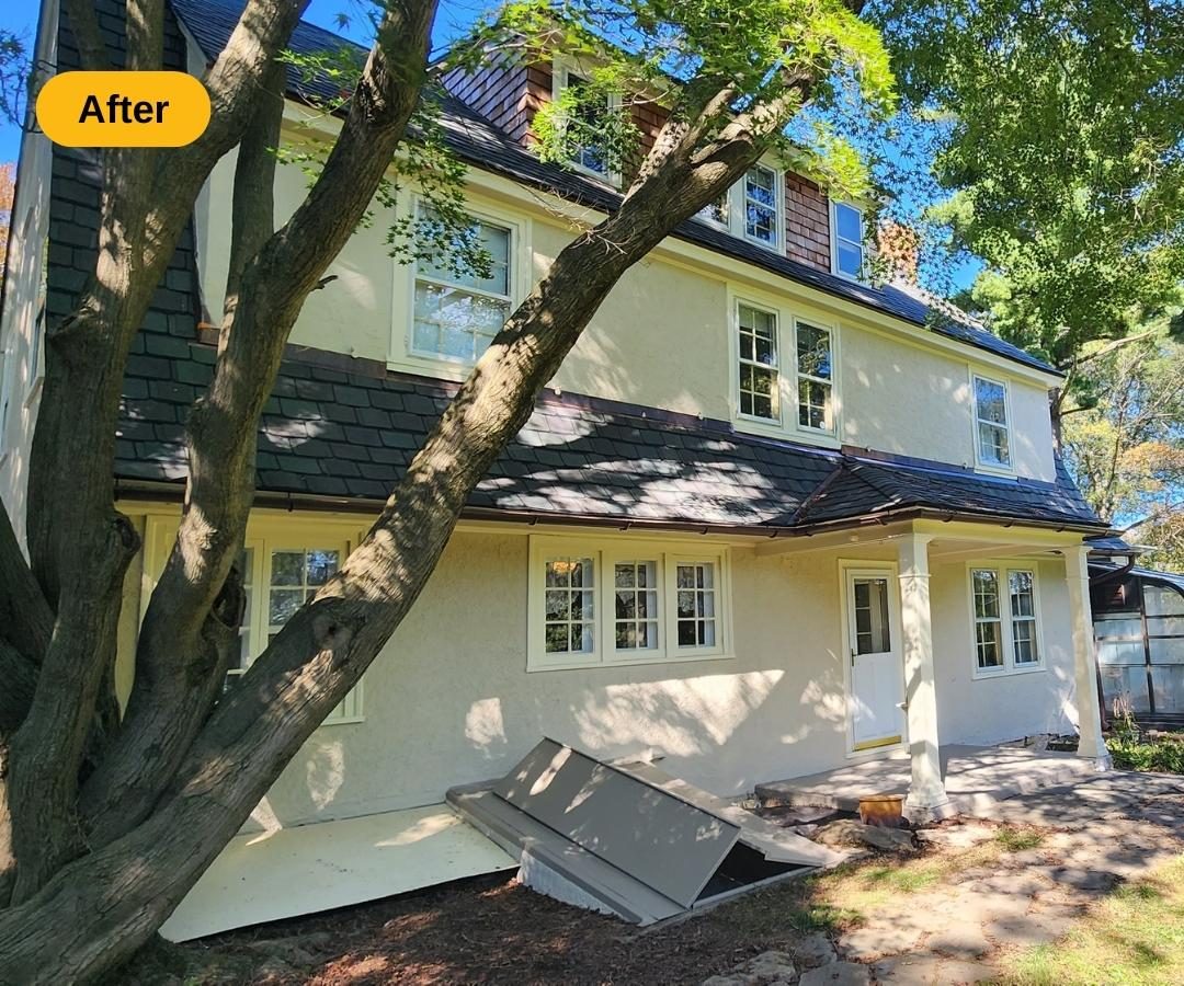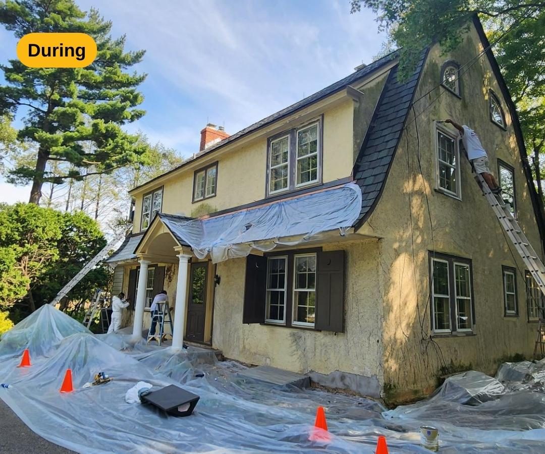 We repainted the exterior of a 1929 house – we worked on the stucco, main siding, and trim. This was a pretty large project for us taking two weeks to complete. We started with prepping and priming the house, we removed as much of the vines as possible during this step. We power washed cleaned the stucco before painting. There were a few stucco repairs that we had to make before painting. The house also had lead paint, so we needed to make sure to take care of the lead paint. We are an EPA RRP Certified Renovator. We also had some minor wood repair that needed to be taken care of.