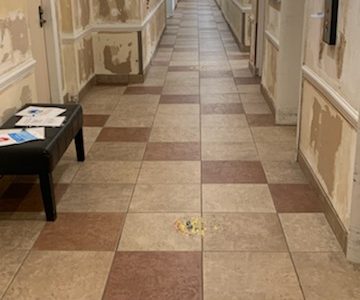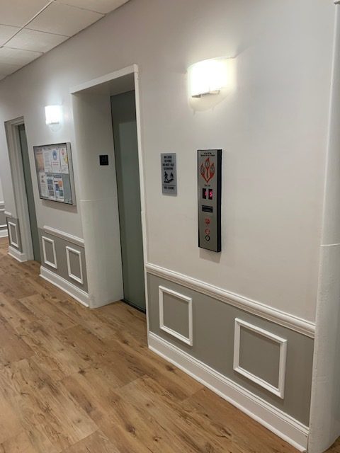 This project was large in scope. Drywall was removed from the first-floor corridors and offices. We had to skim all the walls and sand the entire first floor. We used a drywall sealer instead of a primer due to the health issues of the residents. CertaPro carpenters installed new custom wainscotting on the entire first floor. We removed and installed a new baseboard throughout the entire building. We worked closely with the flooring contractors on scheduling the work to ensure the job was done efficiently as possible.