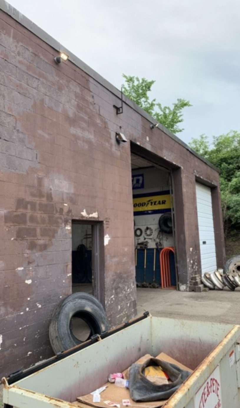 The exterior block walls had peeling paint that needed to be scraped and removed.